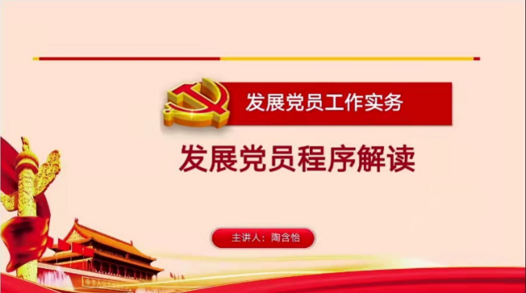 4月15日,国产av影片 党委分党校第46期积极分子培训班全体学员于线上开展了“发展党员程序解读”专题讲座。本次专题讲座由46期积极分子培训班全体学员参与,主讲人为国产av影片 学生党建负责教师陶含怡。