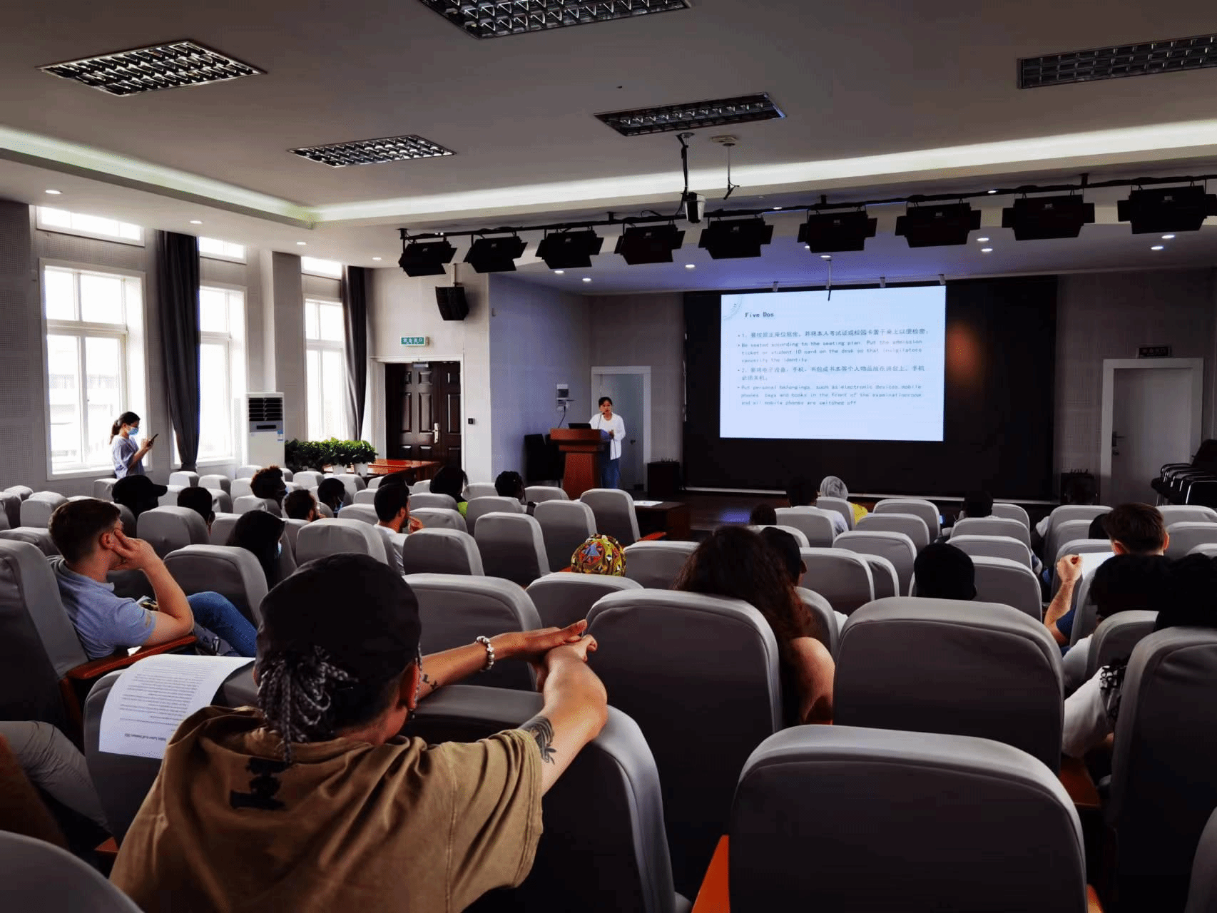 国产av影片 教务办马士琳老师从教务维度出发提醒留学生在注意安全的同时也要积极准备考试,同时注意考试纪律。此后,马老师针对一部分留学生提出的教学方面的问题做了细致的解答。