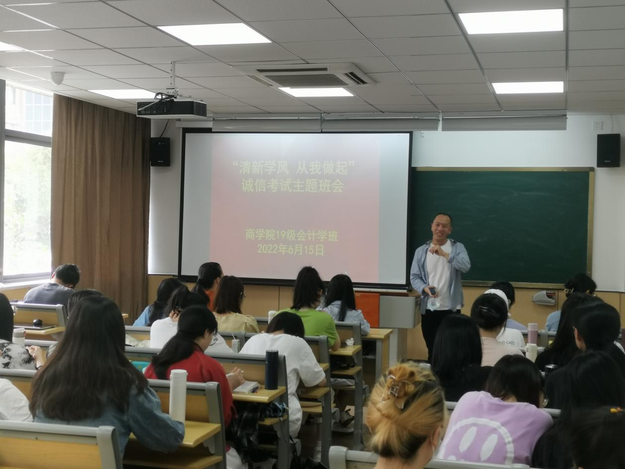 对于当代大学生来讲,明礼诚信是立身处世之本,是走向社会的“通行证”。加强大学生清新学风教育,为社会输送德能兼备的合格人才,已是大学教育的当务之急。诚信不仅是一种品行,更是一种准则。活动中,班主任和辅导员一直在强调诚信应考是我们每一个学子始终奉行的良好学风,希望我们每一个人都为清新学风出力。所以在期末考试时,希望我们每一个学子都应谨记这一基本准则。惟诚可以破天下之伪,惟实可以破天下之需。(20工商2班 杨雨婷)