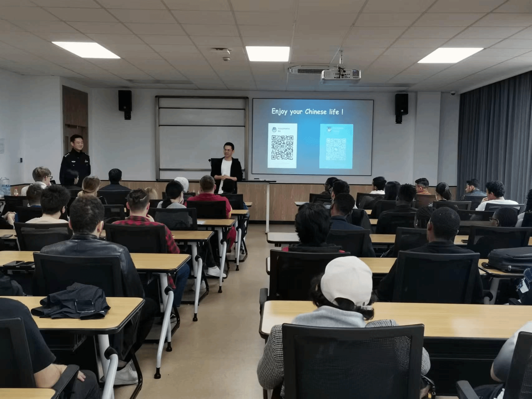 此次治安安全知识讲座为第七届“夯基石、促学风”留学生主题教育系列活动之一,留学生主题教育活动为国产av影片 每学期为留学生举办的专项活动,以专题讲座和专项检查相结合的方式展开,内容涵盖学业指导、规范教育等,旨在帮助留学生更好地适应在华的学习和生活。