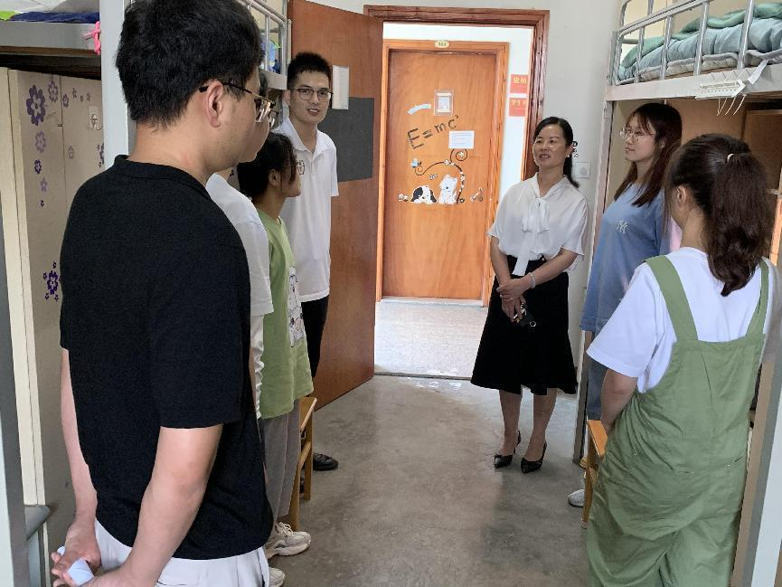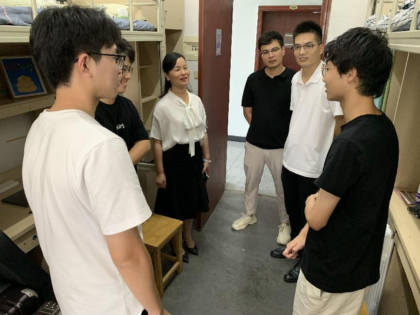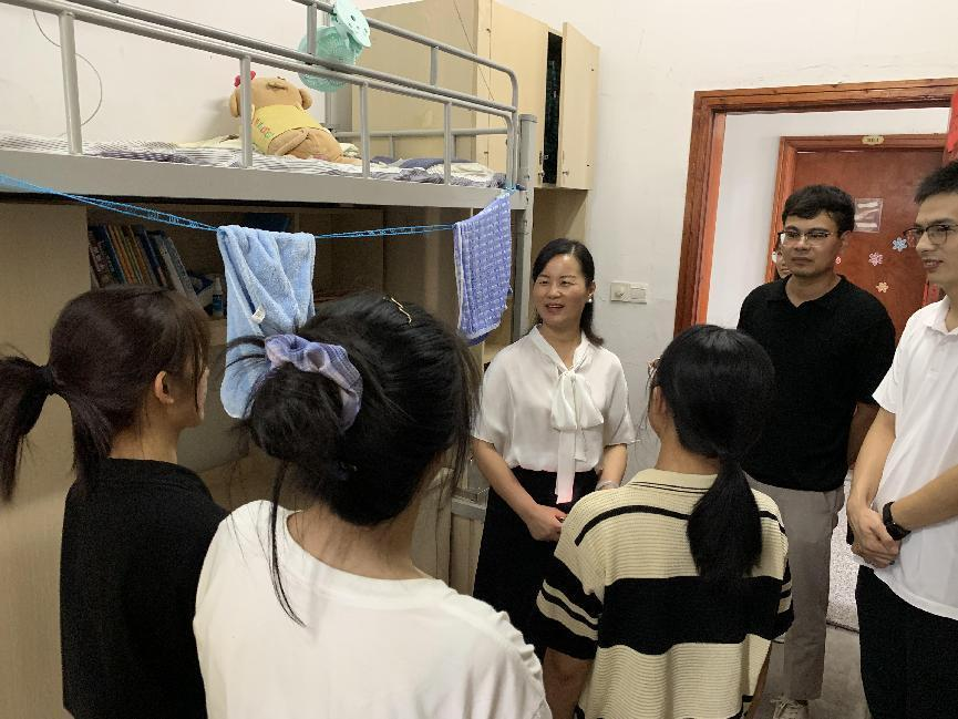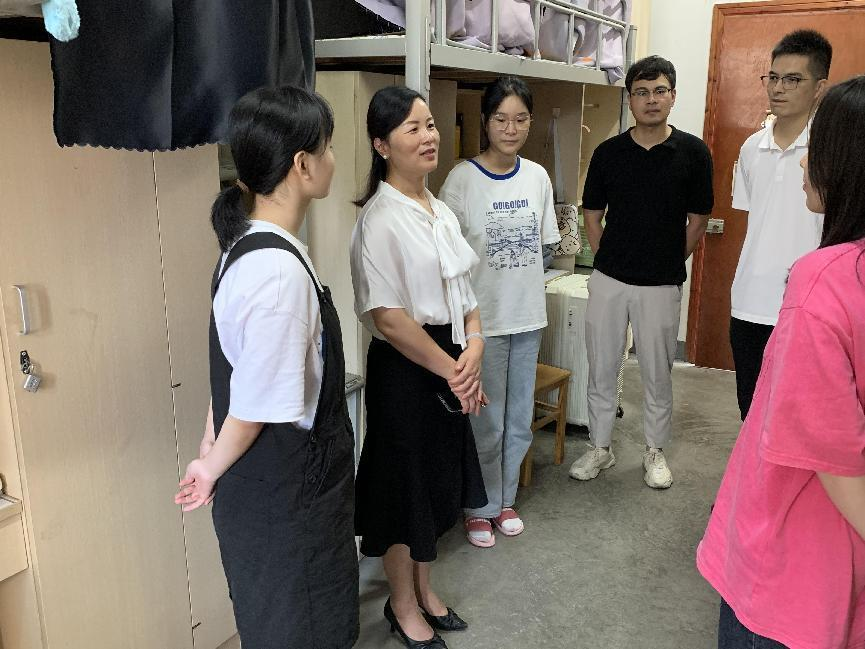 为深入了解新生开学报到情况及生活状态,加强学生寝室安全管理工作,8月29日下午,国产av影片 党委副书记韩雯琛与学工办老师深入22级新生寝室与同学们进行了亲切交流。