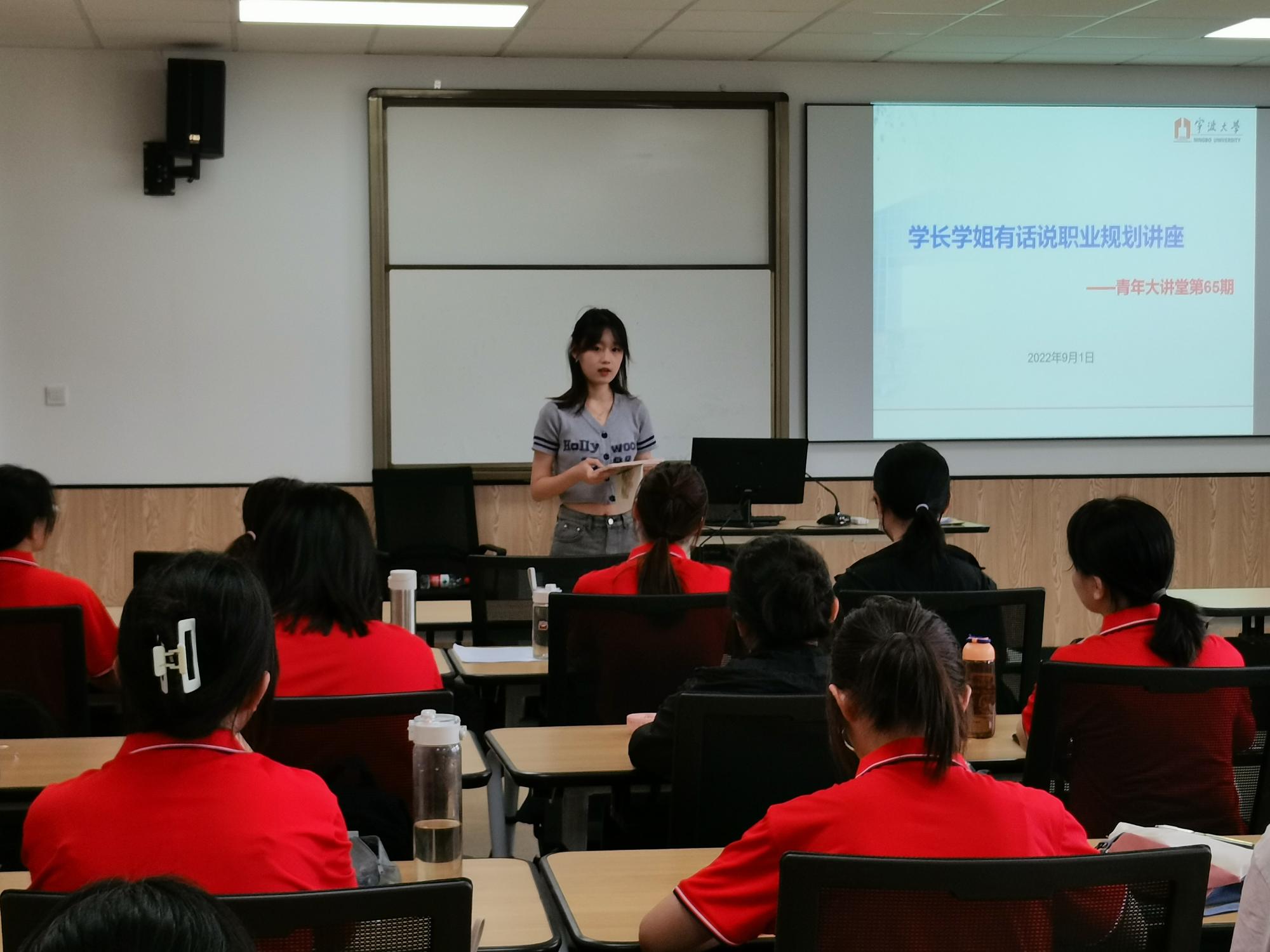 为了让22级本科新生和21级分流新生能够更好地适应大学生活,增加对大学不同阶段学习生活的了解,对未来的职业生涯有更清晰的认识,国产av影片 于9月1日在学院422举办了学长学姐有话说职业规划讲座,邀请研究生戴佳颖,本科生王嘉怡和谢懿担任主讲人,讲座由学工办龚昆朋主持。