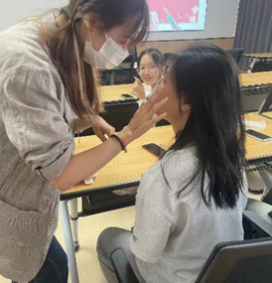 此次化妆培训从化妆步骤与不同脸型,肤色的特征入手,帮助队员找到适合自己的妆容,化妆演示环节让队员们亲身体验,并学习化妆要点。