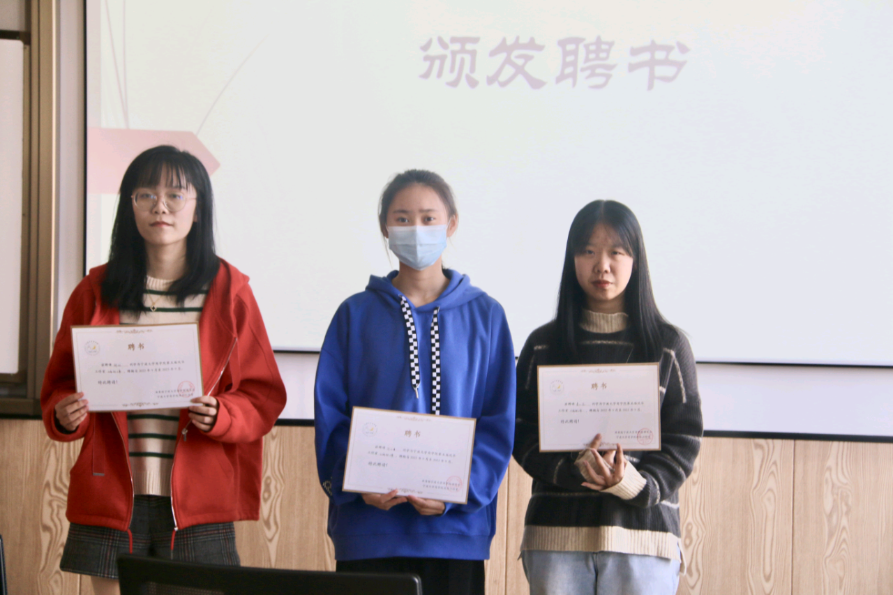 紧接着,各部长向干事们颁发了聘书,向他们表示了欢迎。