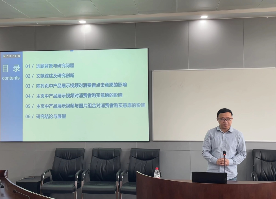 2022年10月12日,国产av影片 在曹光彪楼525会议室举行学术讲座,新引进教师程振东博士汇报了主题为“网上产品展示视频对消费者行为意愿的影响机制研究”的文章,讲座由彭新敏教授主持,国产av影片 40余名师生参加。