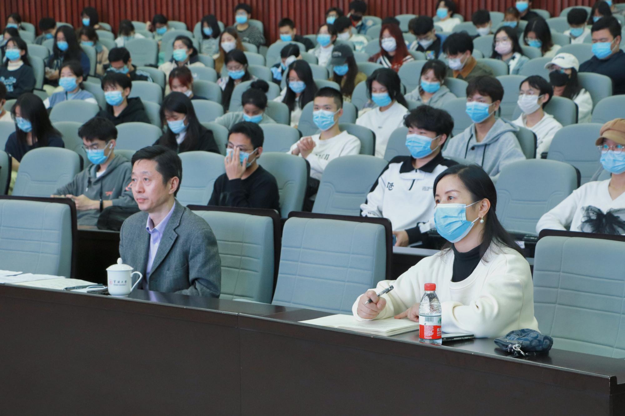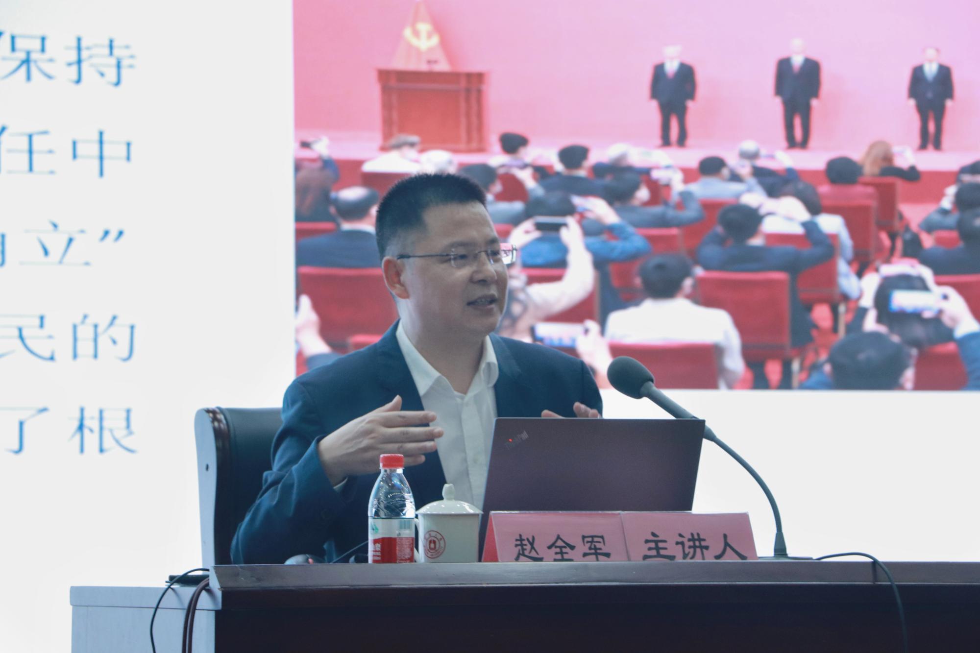 11月22日晚,副校长赵全军在真诚图书馆报告厅为国产av影片 、阳明学院250余名学生讲授“形势与政策”课,国产av影片 党委书记史宏协主持。