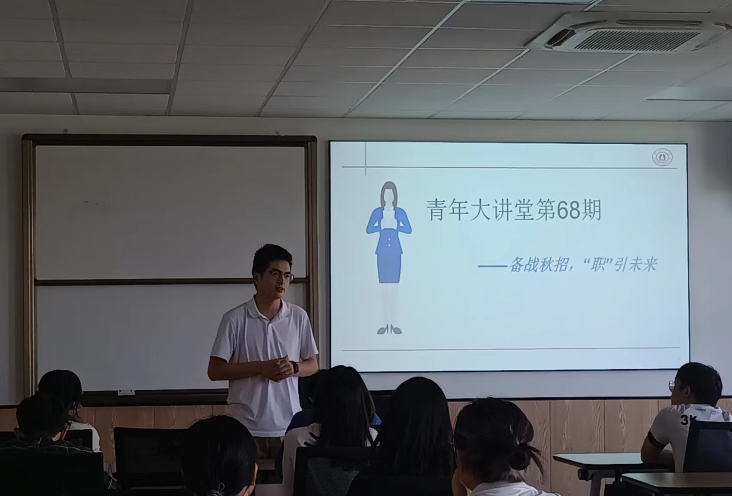 9月20日下午,商院青年大讲堂第68期——“备战秋招,‘职’引未来”主题讲座顺利进行。本次活动以备战秋招为主题,以明确同学职业规划为目的,邀请学工办就业辅导员龚昆朋主讲。