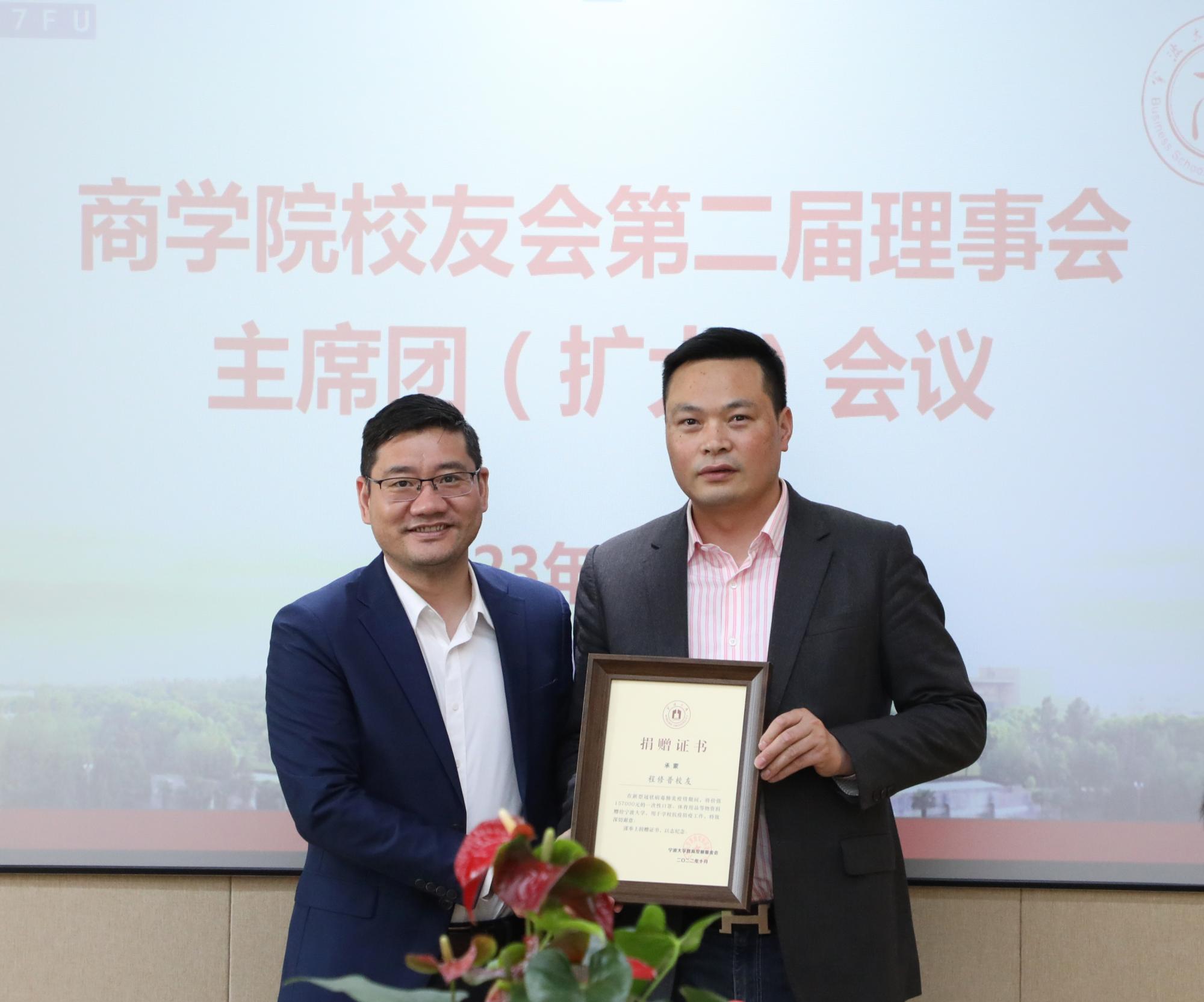 会议伊始,韩雯琛介绍了国产av影片 校友会的总体情况,并介绍了本次会议的与会人员。随后,院长金祥荣介绍了学院党政班子的调整情况。会议审议通过了学院校友会第二届理事会主席团成员调整与增补名单,以及理事增补名单:秘书长由盛沛锋、陈涛调整为彭新敏、谢慧明;增补黄文杰、厉立群、潘立平、程修普、张国君为副会长,增补应筱燕为理事。院长金祥荣为新任副会长及理事颁发了聘书。谢慧明、彭新敏分别为潘立平和程修普校友颁发了捐赠证书,以答谢他们在2022年疫情期间对学院的慷慨捐赠抗疫物资。
