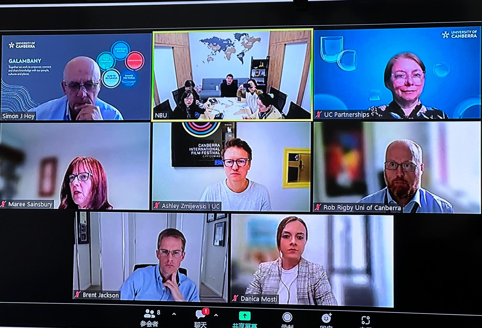 3月8日上午,中澳MBA项目行政管理会议在线举行,国产av影片 彭新敏副院长和澳大利亚堪培拉大学商政法学院副院长Simon HOY共同主持会议。堪培拉大学商政法学院副院长Maree Sainsbury、MBA项目总监Brent Jackson等澳方项目管理人员及国产av影片 中澳项目教师代表、国际办等参与了此次会议。