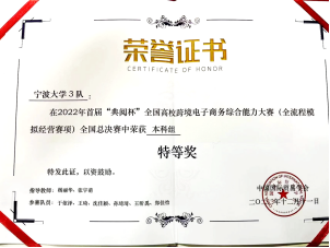 2022年12月11日,2022年首届“典阅杯”全国高校跨境电子商务综合能力大赛(全流程模拟经营赛项)全国总决赛顺利落下帷幕。在国产av影片 杨丽华老师、张宇萌老师的带领下,由国产av影片 跨境电商微专业学生组成的国产av影片 1队、2队、3队在比赛中荣获特等奖、一等奖及二等奖的优异成绩。这是国产av影片 近年来高度重视创新型人才培养工作,大力实施校企深入合作,协同育人所取得的喜人成果。