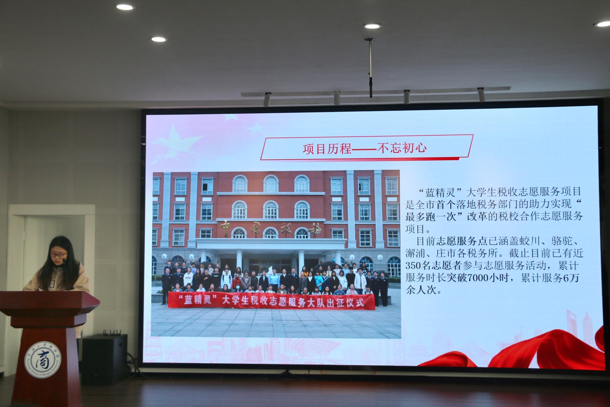 随后,学院优秀志愿者团队以“我们这样学雷锋”为主题,分享了目前在开展的助农扶农、税收志愿服务、防诈志愿服务,志愿者团队的主讲人们欢迎同学们加入志愿团队,一起进社区、进校园、进企业、进乡村,用青春志愿行动为社会主义建设贡献力量。来自本科生第二党支部的俞晨慧则分享了自己大学四年373.5个小时的各种志愿服务经历,在讲到自己参加全运会、核酸检测志愿者的经历时,他说志愿服务充满了挑战和辛苦,但收获了自信和成长,他鼓舞在场的同学们:“加入志愿者服务队伍,用向上的力量和火红的初心、注满感恩,服务人民,在新时代新征程的道路上跃动青年积极向上的时代脉搏。”