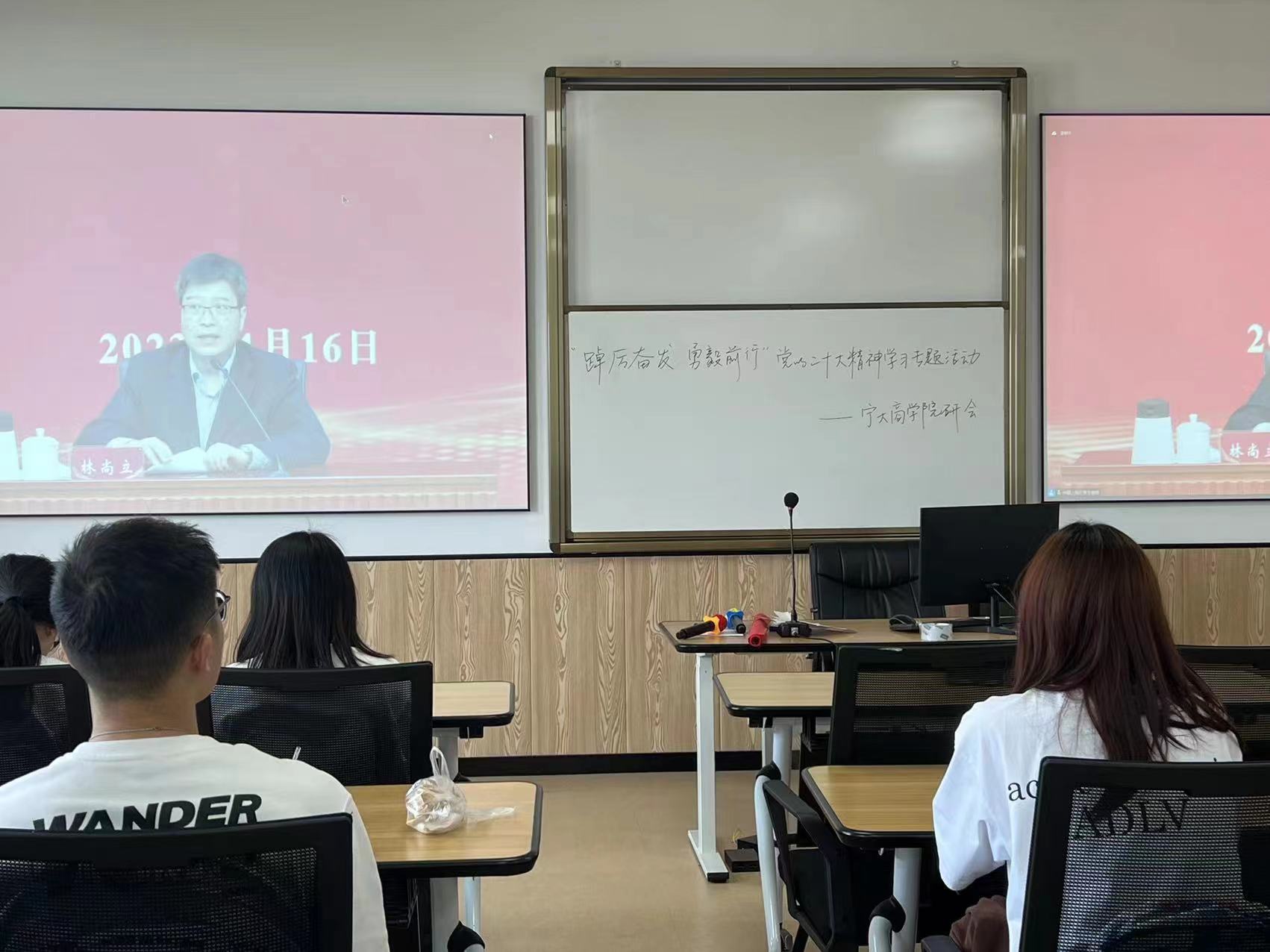 首先,同学们共同观看直播,中国人民大学校长林尚立在主题宣讲中详细论述了党的二十大主题、党的中心任务和党对青年的希冀,阐明了当代青年应当承担的使命和责任。随后同学们都发表了自己的感想,各抒己见。“作为一名新时代的青年学生,我们应该勇做时代的奋进者、开拓者和奉献者。把学习作为一种追求,让勤奋学习成为青春远航的动力,让增长本领成为青春搏击的能量。将人生理想融入国家和民族的事业中,在不懈奋斗中实现自己的人生价值。”