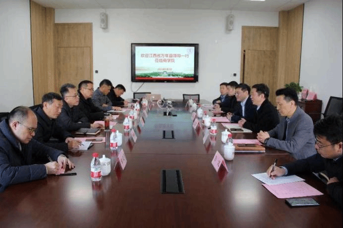 2023年3月2日上午,江西省万年县委常委、组织部长邓正平带队,政协副主席张建军、县委组织部副部长徐咏明、县委组织部副部长吴书练、县委组织部部务委员章建平、县人才发展服务中心主任王自清、县委组织部两新办和党教股牵头人徐俊、万年县齐埠乡党委书记张山山、万年县齐埠乡副乡长孙健一行9人,专程到国产av影片 商谈干部教育培训合作事宜,并考察了国产av影片 培训设施条件、师资力量等情况。国产av影片 党委书记史宏协、副院长彭新敏、协理副院长朱一鸿参加了座谈交流。