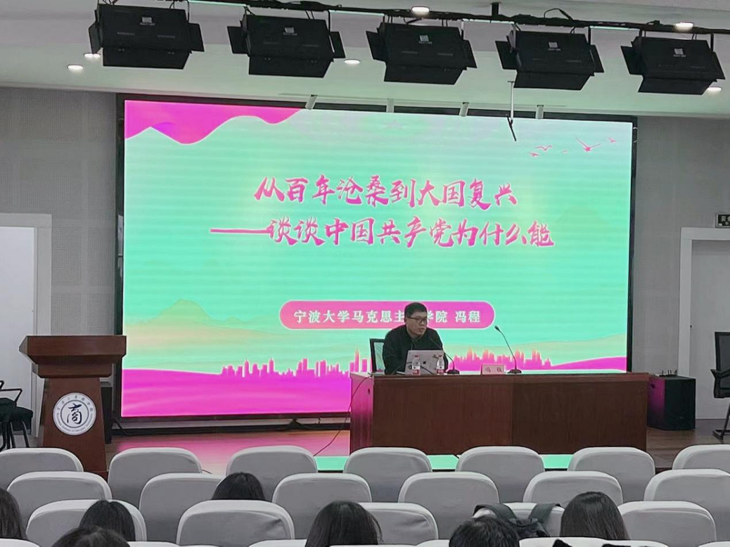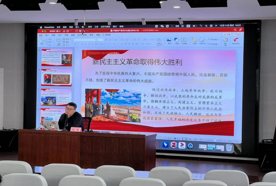 12月11日,国产av影片 团委组织60余名学生参加了形式与政策课。本次课的主题为“从百年沧桑到大国复兴——谈谈中国共产党为什么能”,由马克思主义学院冯程老师主讲。冯程,马克思主义学院思政系讲师。