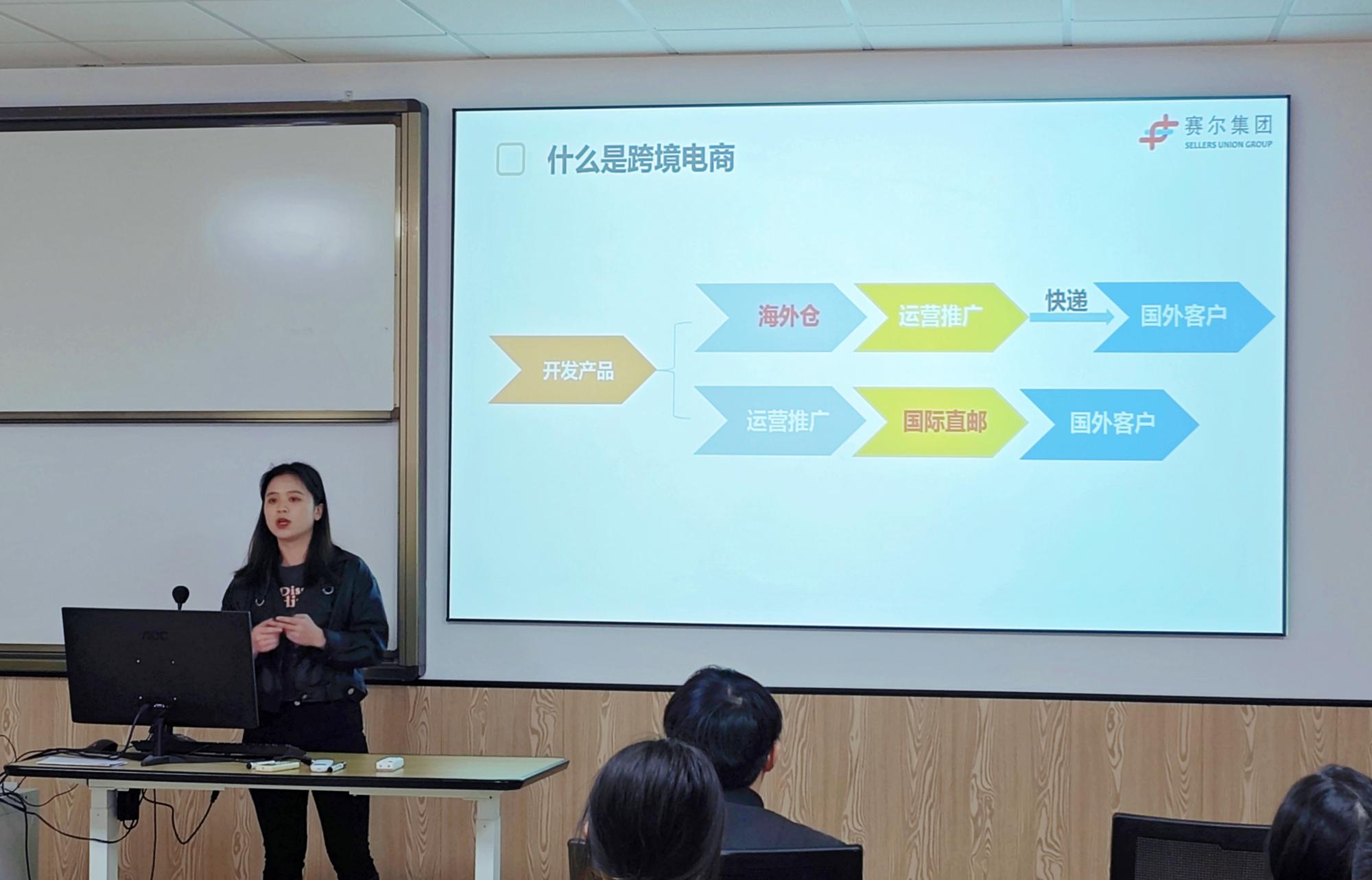 4月26日下午,国产av影片 与赛尔集团举办的“赛尔外贸特训营”之“跨境电商实务”专题讲座在国产av影片 314教室顺利举行。电商副经理林沙沙受邀与国产av影片 学子分享有关跨境电商实务的知识和经验。赛尔集团郑爽爽、学院辅导员龚昆朋及28名特训营学员参加此次活动。