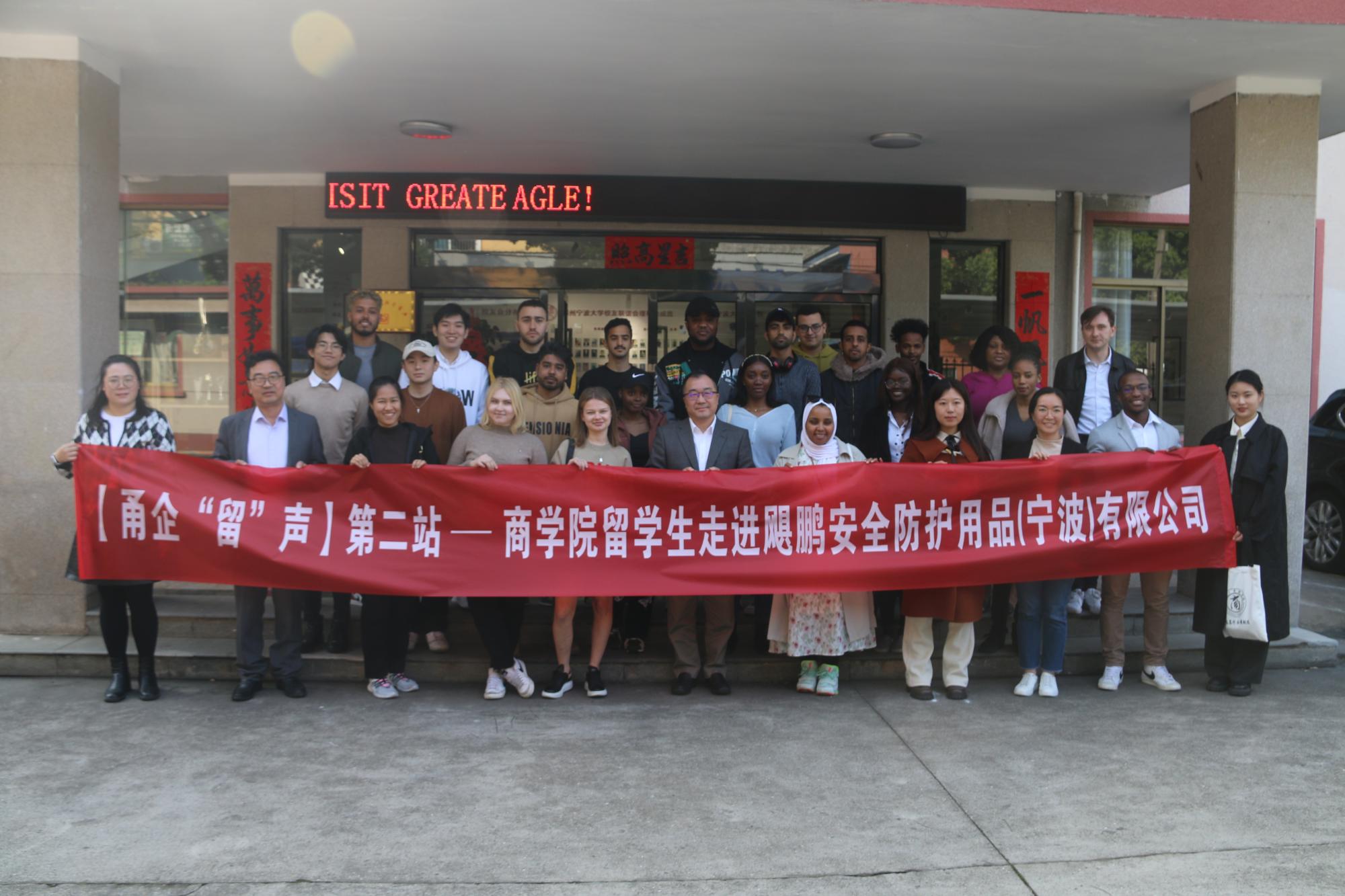 4月26日下午,国产av影片 校友会联合鄞州校友会推出甬企“留”声活动再次启航,活动的第二站走进了飓鹏安全防护用品(宁波)有限公司,也是鄞州区国产av影片 校友会的根据地,共有23名留学生参与其中,受到飓鹏安全防护用品(宁波)有限公司董事长董建伟、鄞州国产av影片 联谊会副会长庄学东等人的热情接待。