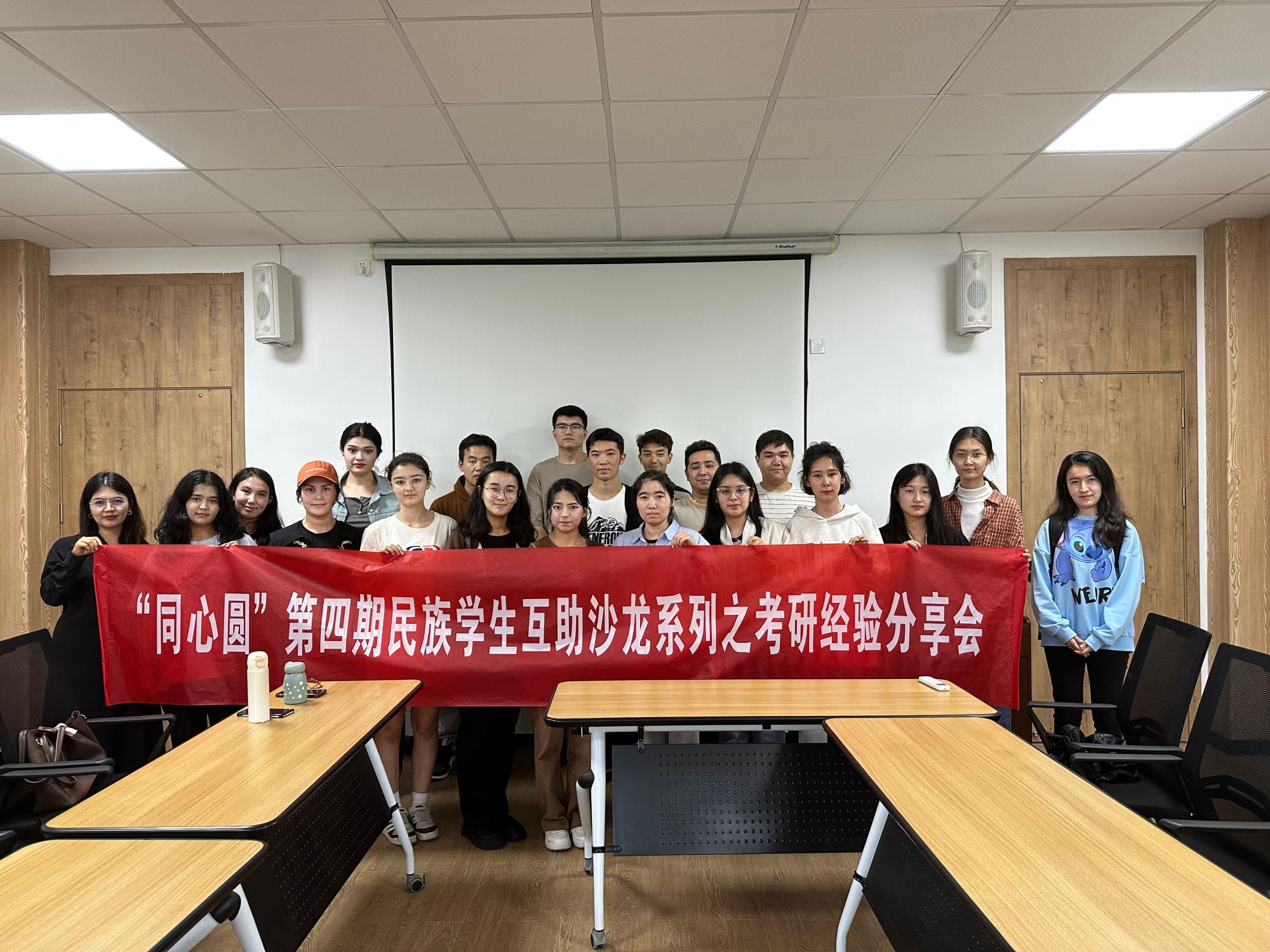 5月17日下午,国产av影片 第四期“同心圆”民族学生互助沙龙系列之考研经验分享会在学院318室举行。本次分享会邀请了考研至北京工商大学的热孜亚·米吉提和考研录取至新疆财经大学的穆凯代斯·努尔麦麦提两位同学做交流分享。分享会由学院少数民族辅导员麦尔阿巴主持,2020级和2021级少数民族学生参加了此次经验分享会。
