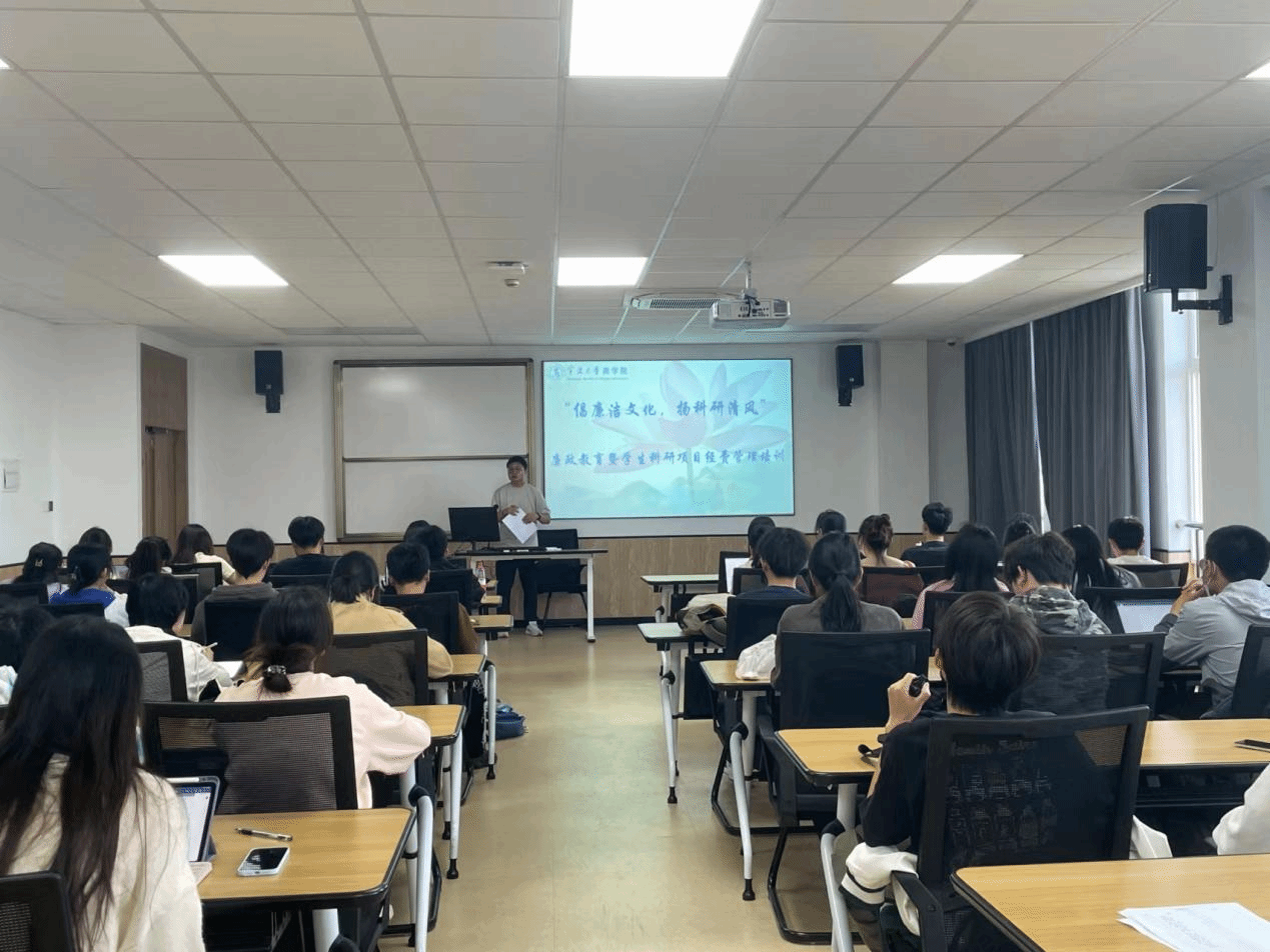 5月25日,国产av影片 针对校Srip、校研究生科研创新项目、大学生创新创业训练计划项目、省新苗项目等学生科研项目团队开展了“倡廉洁文化,扬科研清风”廉政教育暨学术科研项目经费管理培训。