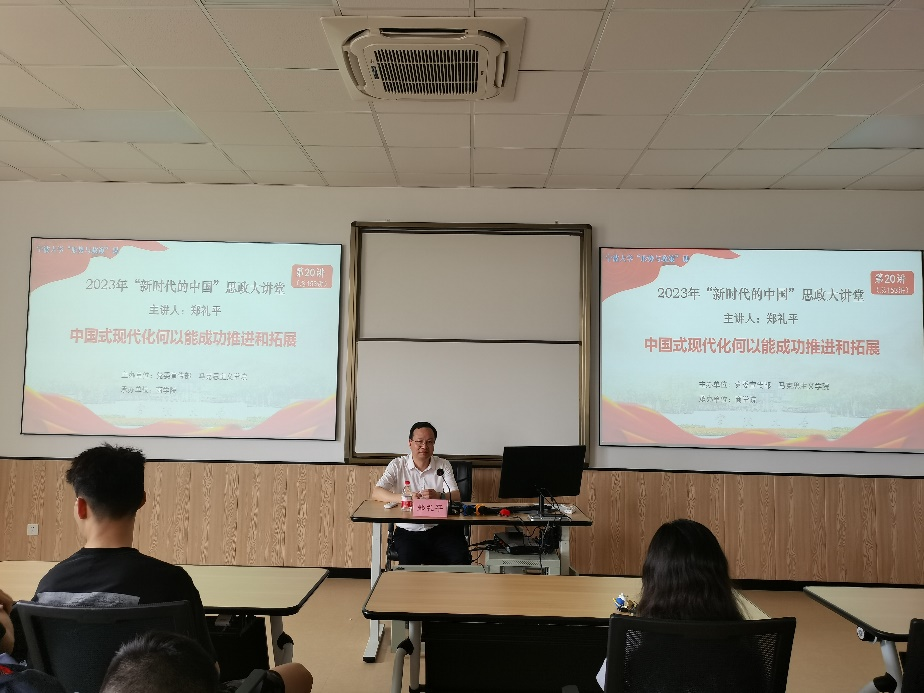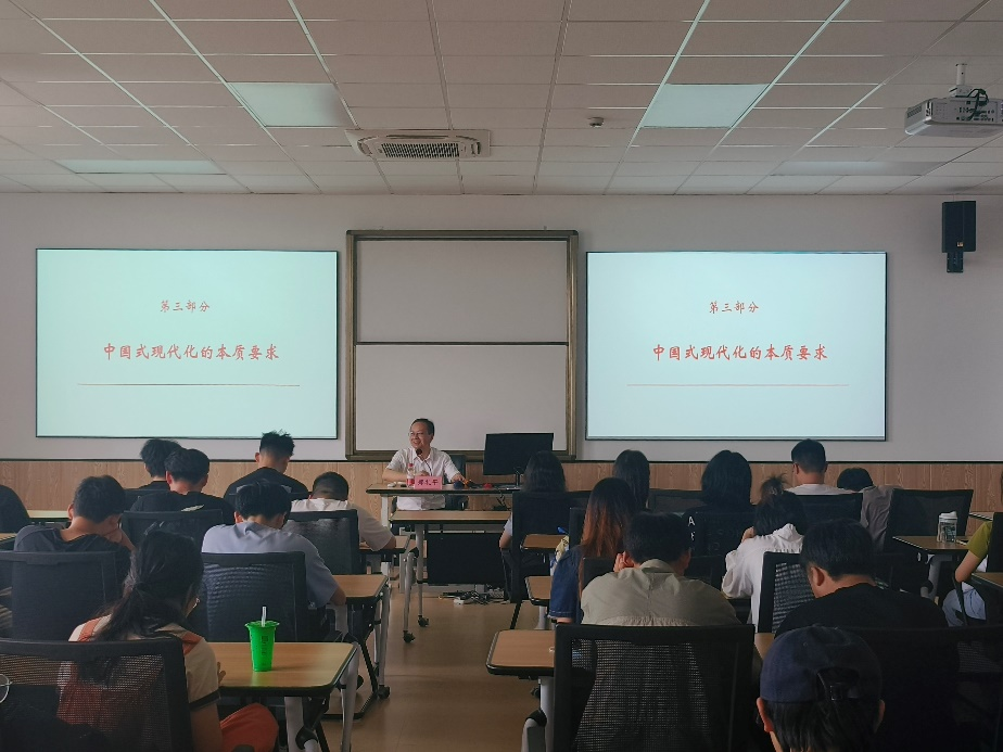 5月26日下午,国产av影片 马克思主义学院郑礼平教授在商院523教室为国产av影片 50余名学生讲授以“中国式现代化何以能成功推进和拓展”为主题的形势与政策课。