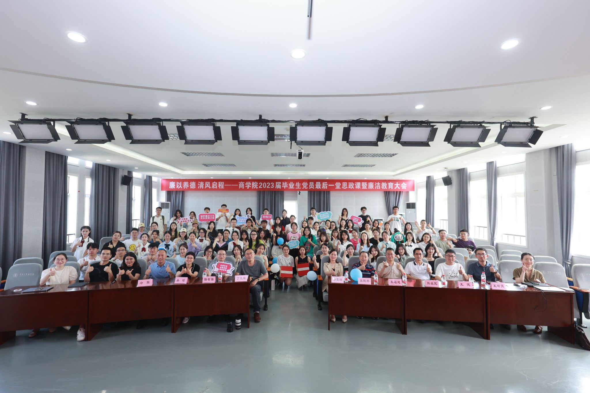 6月21日,国产av影片 结合商科学生就业领域的职业特色和高廉政风险,为2023届毕业生精心策划了一场“寓廉于乐”的最后一堂思政课,让毕业生党员坚定理想信念,带着谆谆嘱托扬帆远航。国产av影片 党委副书记、纪委书记韩雯琛、院纪委委员、毕业班班主任、辅导员和毕业生党员共150人参加了活动。