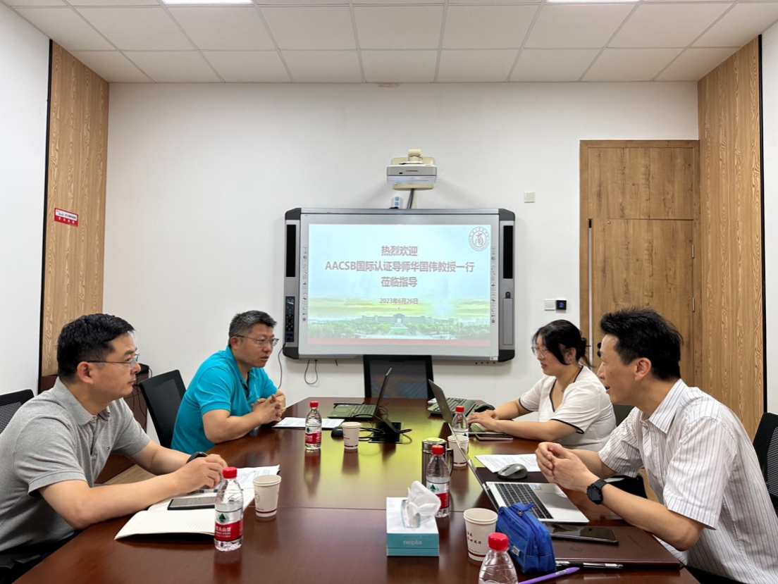 在与华国伟教授和曹卫兵博士的座谈中,华教授首先听取了学院进展报告的撰写情况汇报。国产av影片 协理副院长朱一鸿分别介绍了学院自《初始自评报告》通过以来采取的改进措施、学习保障建设情况以及师资力量的提升成果。华国伟教授详细审查了学院的认证工作,对学院在资源配置、教学、科研等方面所做的努力给予了高度评价,同时强调了AACSB认证的标准和要求,并进一步就学院的战略规划、教学质量管理体系、学术影响力、社会服务与培训等方面提出了一些针对性建议。