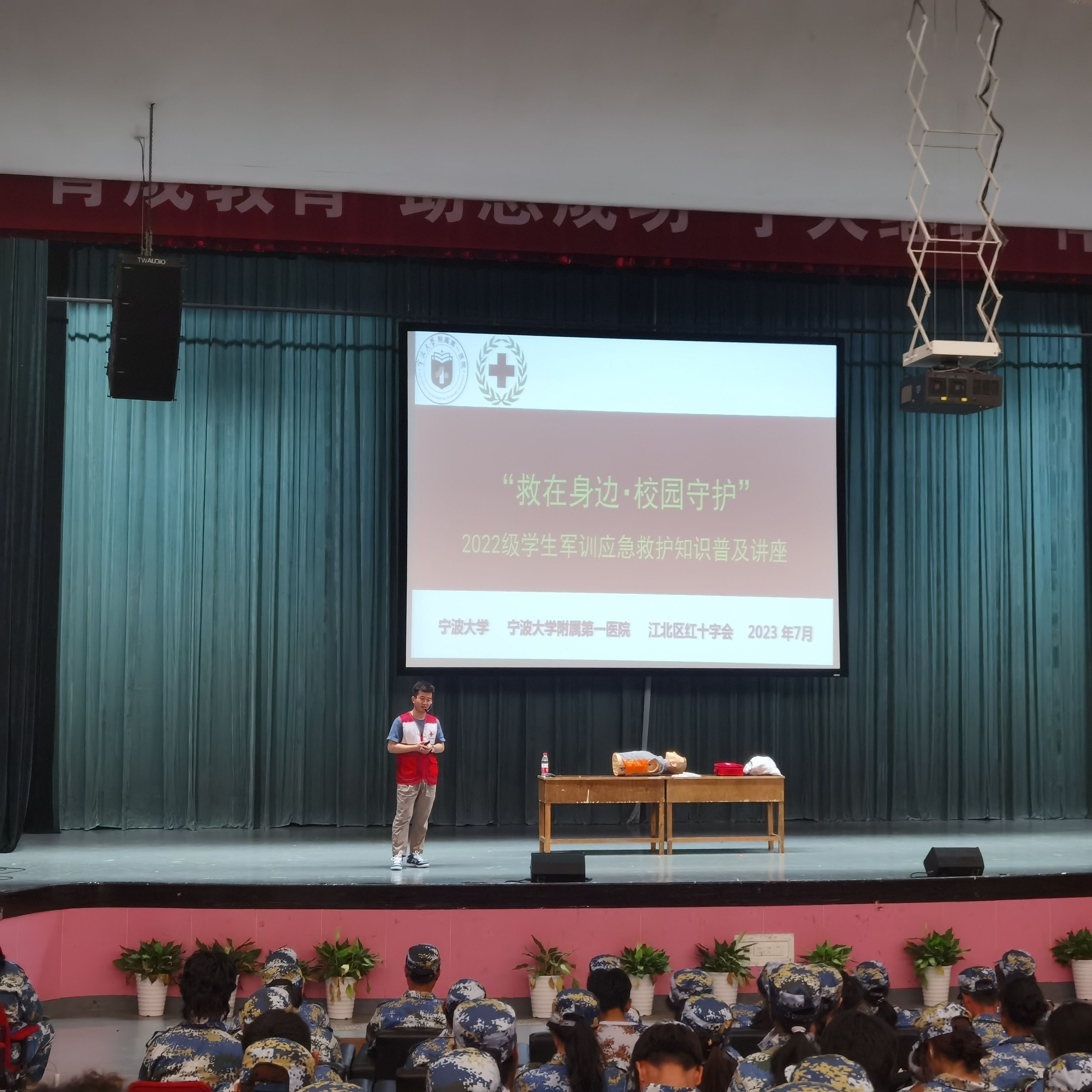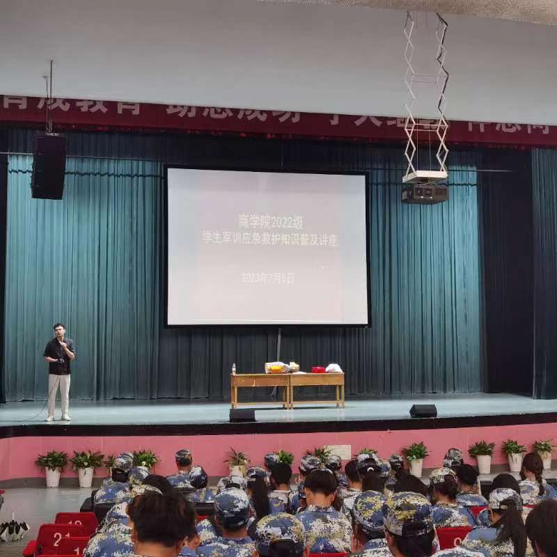 为提高军训学生的安全保护意识,普及应急救护知识,7月5日下午,国产av影片 在林杏琴会堂举行2022级学生军训应急救护知识普及教育讲座。国产av影片 附属第一医院医师、江北区红十字会会员陈阳受邀为国产av影片 500多名2022级军训学生做讲座。讲座由学工办主任陈彬主持。