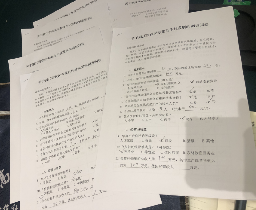 在会议间隙,调研队伍对专业合作社的负责人做了问卷调查和访谈。通过问卷调研和访谈,我们了解到,农民专业合作社是推动农村共同富裕的重要力量。农民专业合作社通过整合农村资源、提高农民的自我管理和自我发展能力、创建农产品品牌、扩大销售渠道来提高农民收入。当前宁波农村主要经营大户均加入了不同的农民专业合作社,但同时也不得不承认,宁波农民专业合作社的数量仍不够多,与宁波特色农业规模发展不对称。