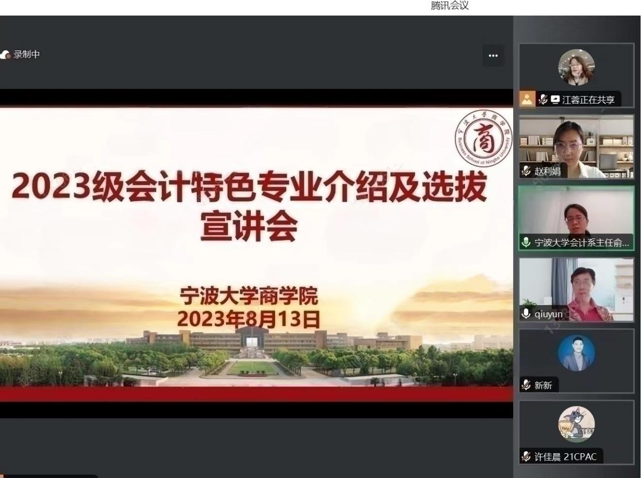 2023年6月高考结束以后,国产av影片 会计系陆续开展了会计学(CPA Canada)特色方向班的宣传招生工作。同时,根据《2023级会计学(CPA Canada)特色方向班选拔录取办法》文件精神和招生工作安排,于8月13日顺利召开了2023级会计特色专业介绍及选拔的线上宣讲会。