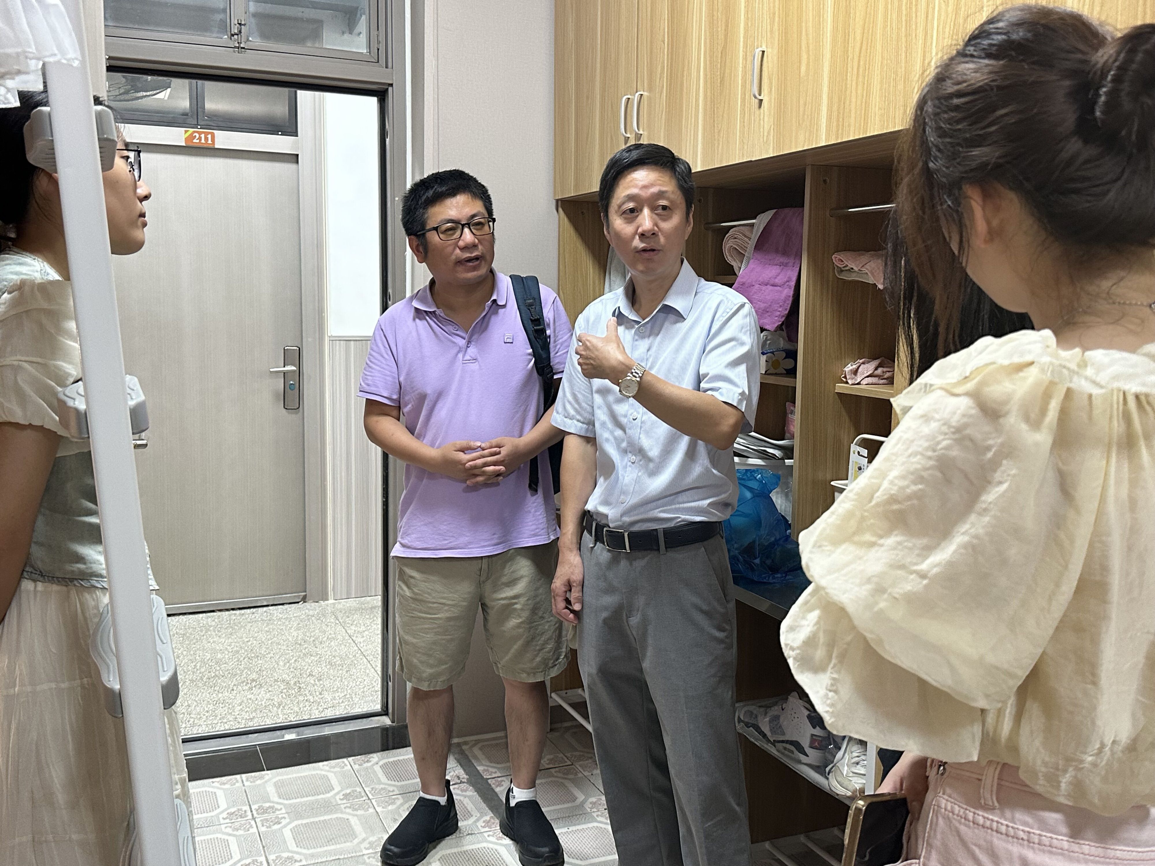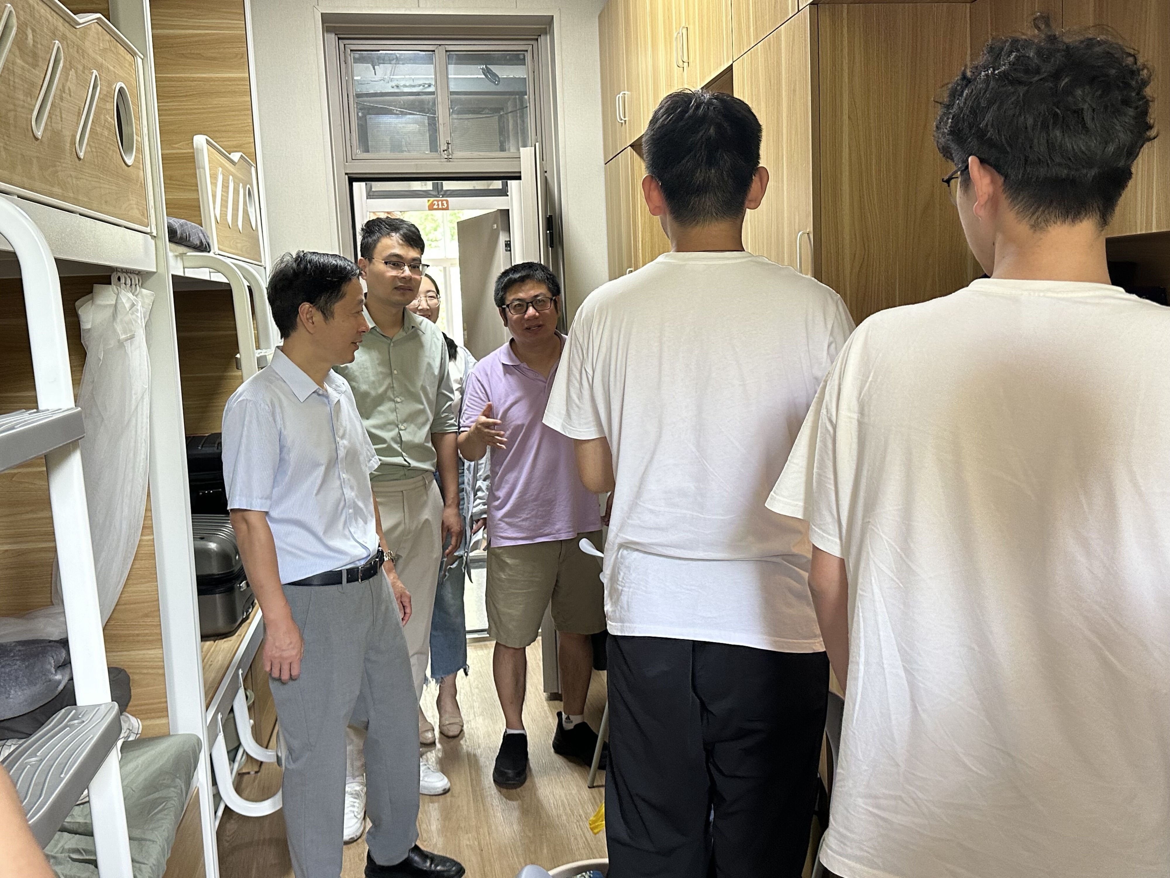 为深入了解新生开学报到情况及生活状态,加强学生寝室安全管理工作,9月1日下午,国产av影片 党委书记史宏协、23级工商管理(中加学分互认)班班主任徐挺老师与学工办辅导员老师深入23级新生寝室,与同学们进行亲切交流。