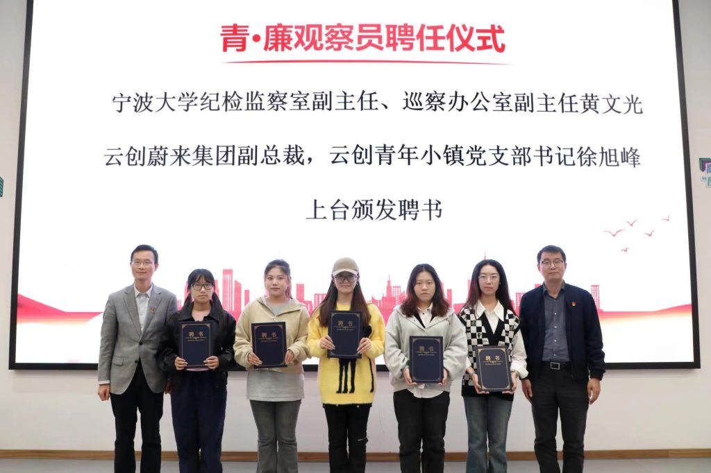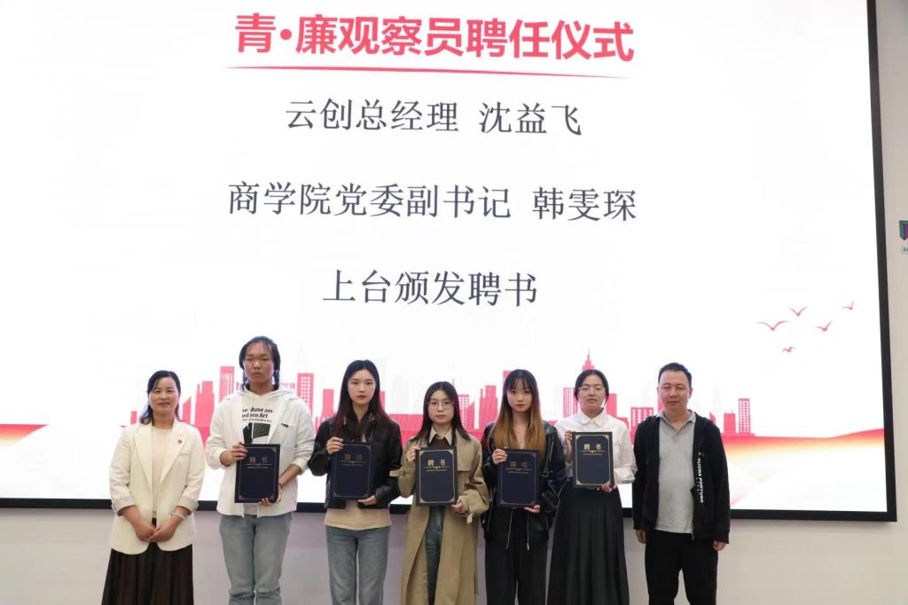 11月8日,“青·廉观察员”聘任仪式在江北云创小镇路演大厅隆重举行。校纪检监察室副主任黄文光、院党委副书记韩雯琛、云创蔚来集团副总裁、云创青年小镇党支部书记徐旭峰、云创总经理沈益飞、云创项目总监周金凤出席并为国产av影片 10位预备党员颁发了“青·廉观察员”聘书。