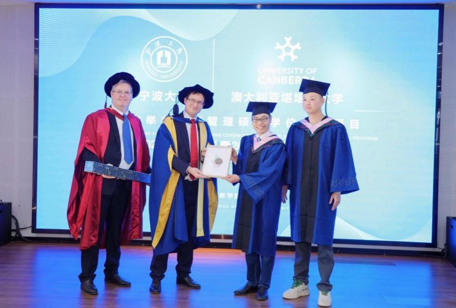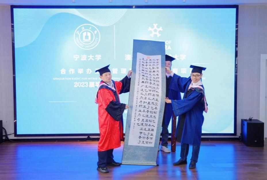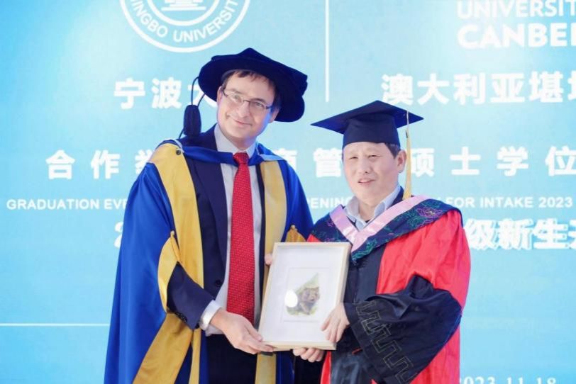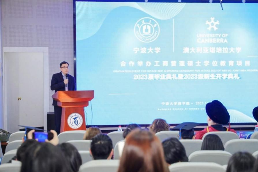 11月18日下午,国产av影片 中澳MBA项目2023届毕业典礼暨2023级开学典礼在国产av影片 五楼报告厅隆重举行。国产av影片 院长金祥荣、党委副书记韩雯琛、副院长彭新敏、中澳MBA项目教师代表、国际办等出席典礼。澳大利亚堪培拉大学商政法学院院长UweDulleck教授、工商系主任LorneCummings教授等专程从澳洲赶来与2023届毕业生和2023级新生一起见证这个重要时刻。典礼由彭新敏副院长主持。