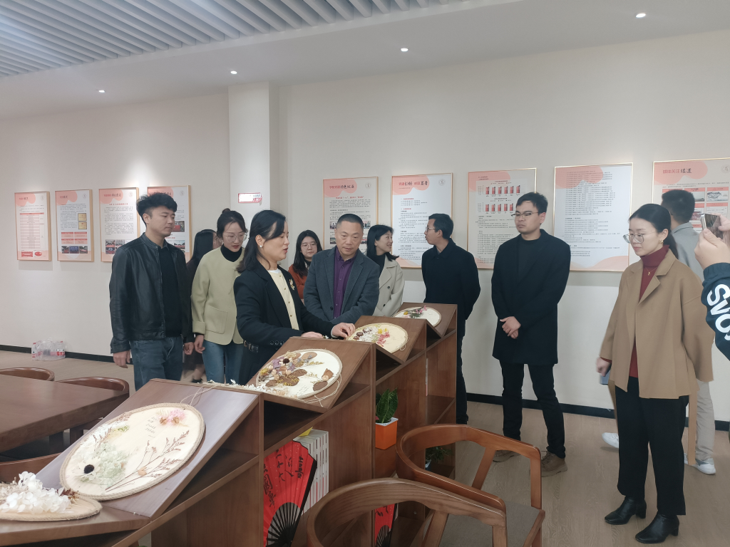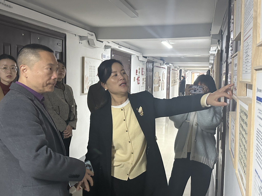 在韩雯琛的带领下,李孝明一行人参观国产av影片 “清风长廊”、共“商”青春心理工作室、共“商”未来生涯工作室、学生自习室及党员之家。
