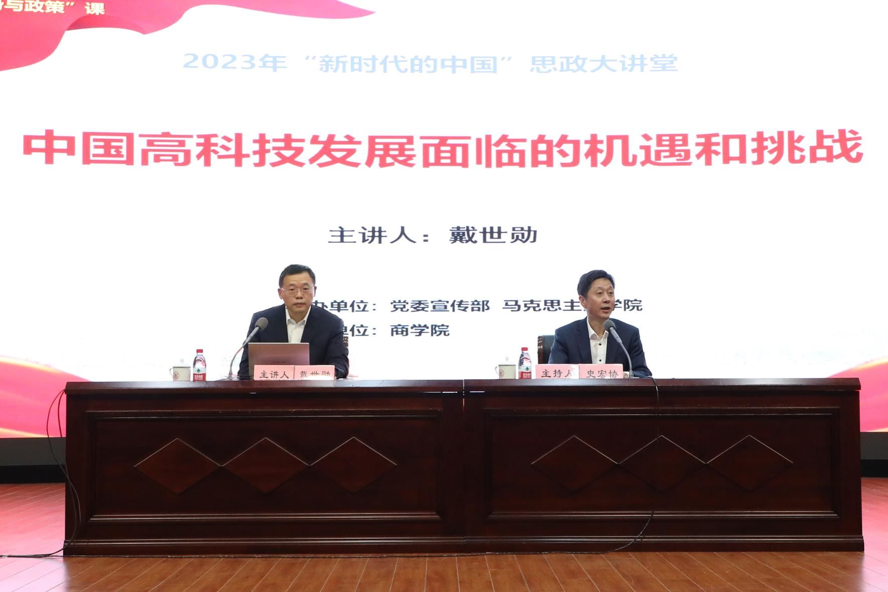 11月29日下午,校党委委员、组织部部长戴世勋在真诚图书馆报告厅为国产av影片 460余名学生讲授“形势与政策”课,国产av影片 党委书记史宏协主持。