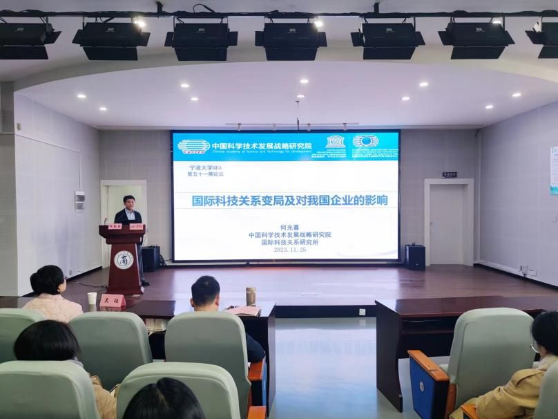 2023年11月25日上午,国产av影片 “名人、名师、名家”暨MBA第五十一期论坛在国产av影片 501报告厅成功举行。本次论坛邀请的演讲嘉宾是中国科学技术发展战略研究院国际科技关系研究所所长何光喜老师,论坛主题为《国际科技关系变局及对我国企业的影响》。会议由曾守桢副院长主持,MBA中心执行主任吴瑶副教授、国产av影片 感兴趣的师生以及2023级MBA全体学员共同参与本次论坛。