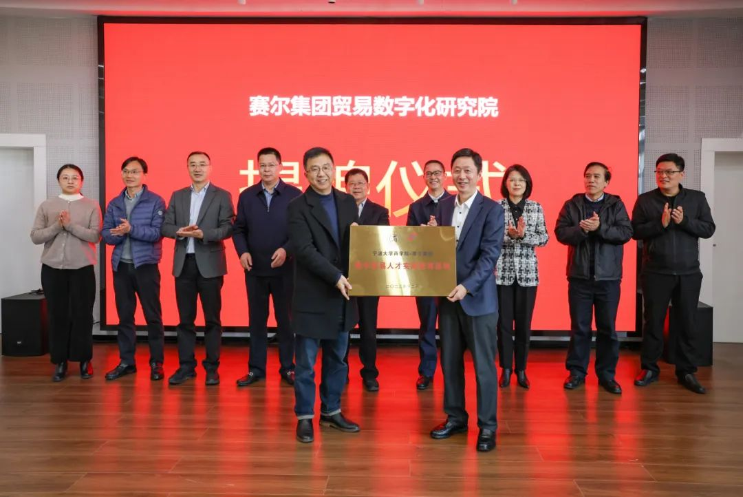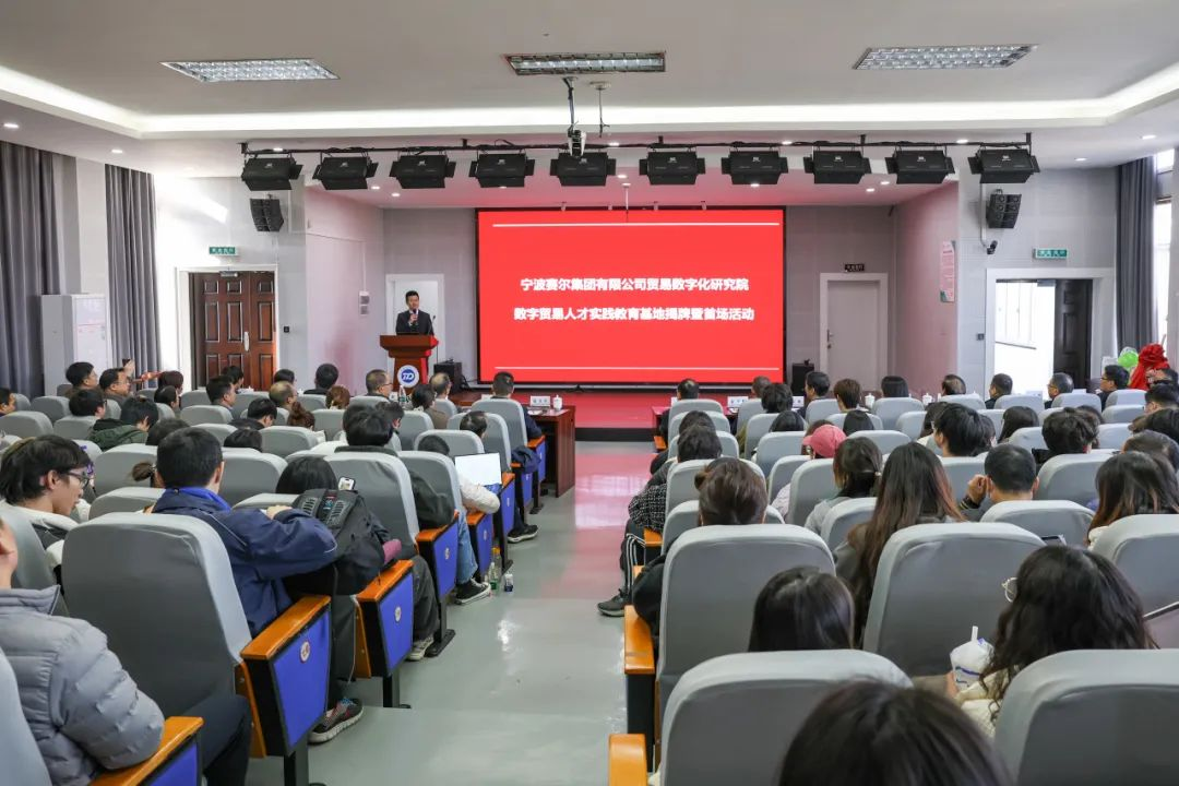 12月13日,由国贸系与宁波赛尔集团共同举办的宁波赛尔集团有限公司贸易数字化研究院暨数字贸易人才实践教育基地揭牌活动在国产av影片 501报告厅举行。来自校内师生代表及校外嘉宾共180多位参与此次活动。其中校内外嘉宾主要有宁波市政府发展研究中心主任张健、国产av影片 党委副书记赵全军、宁波市工商联副主席吴益统、宁波市工商联副主席、赛尔集团董事长徐平炬、浙江大学中国数字贸易研究院院长马述忠、国产av影片 党委书记史宏协、民建宁波市委会副主委、国产av影片 国际贸易所所长杨丽华、市工商联研究室主任陈斌、一级主任科员孟云飞、市商务局服务贸易处处长鲍伟伟、市贸促会贸易促进部部长徐志伟、赛尔集团副总裁方永强、赛尔集团市场研究部总经理兼贸易数字化研究院院长孟祥龙、赛尔集团信息技术部副总经理纪福建、宁波东方理工大学助理教授金鑫等领导和嘉宾出席仪式。国贸系参与此次活动的教师代表还有系主任丛海彬教授,青年教师有夏良科、伍湘陵、钟建军及王腾飞。