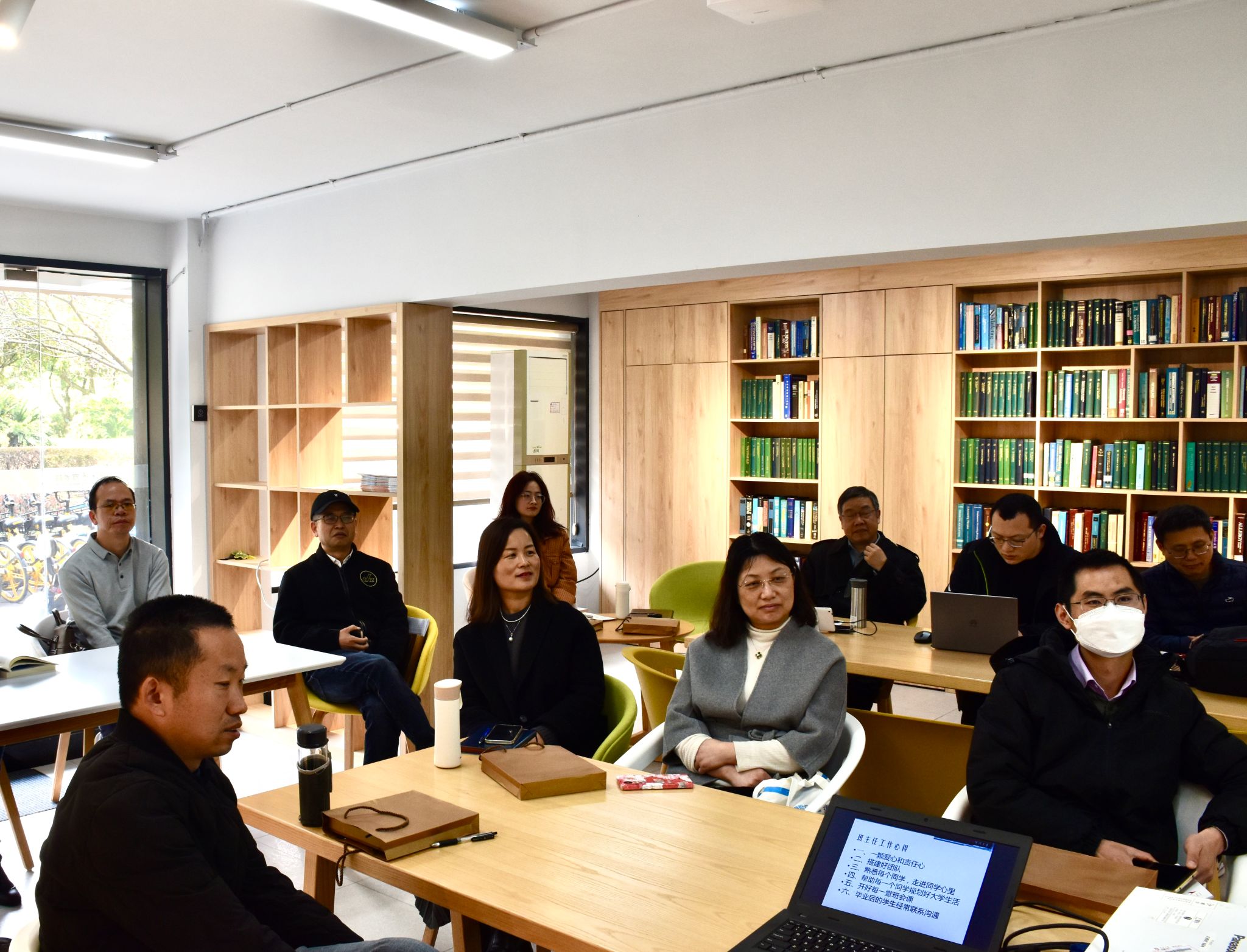 韩雯琛做总结。她首先感谢了朱福建老师精彩的分享,表示自己也受益匪浅。接着结合本科教育教学评审工作,强调了班级班风学风建设,尤其是课堂纪律。此外,她通过学生个案,阐述了当前学生工作的重点与难点,她希望班主任能走进学生,加强与学生的沟通交流,树立学生正确的世界观、人生观与价值观,落实立德树人的根本任务。