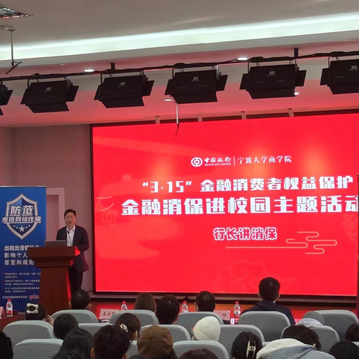 为更好地普及金融知识,切实帮助高校大学生掌握必备的金融知识和技能,提升风险防范意识和自我保护能力,3月13日下午,“金融消保进校园”反诈知识讲座在国产av影片 501报告厅顺利进行。本次讲座邀请中国银行江北支行行长、党委书记王云伟作为主讲人,学院党委书记史宏协、副书记韩雯琛出席,9名银行一线工作人员到场。