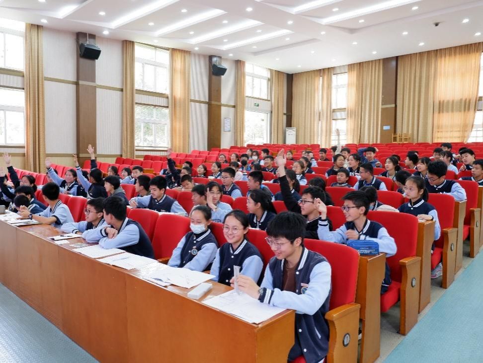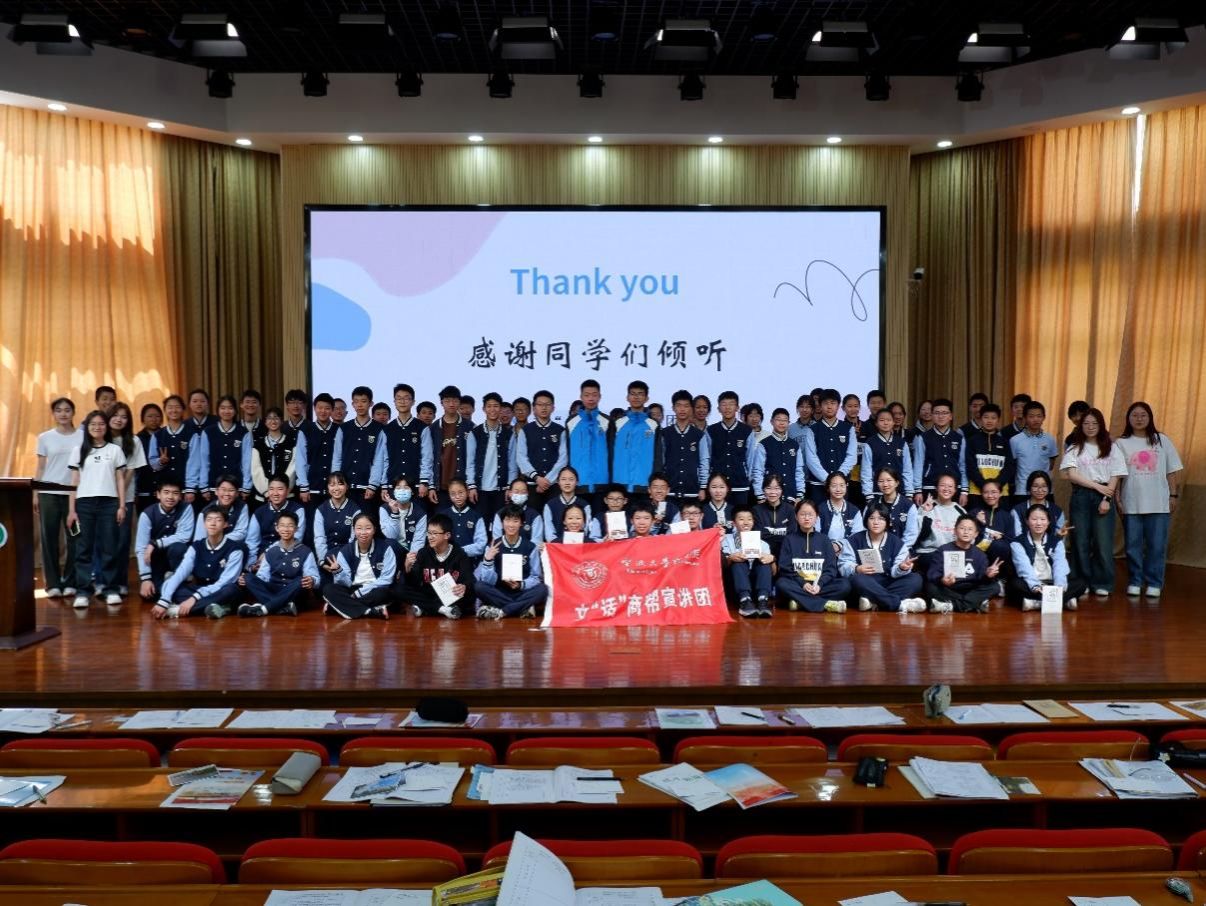 4月10日,国产av影片 文“话”商帮宣讲团来到镇海区蛟川书院,通过理论宣讲和游戏互动的方式,为初二的同学们带去了一堂难忘的团课。