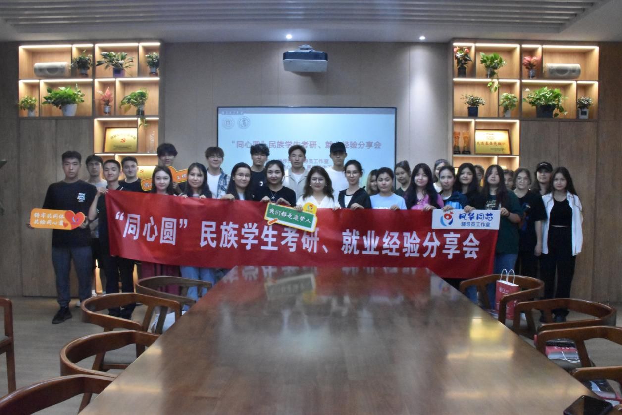 6月16日下午,由校“风华同芯”辅导员工作室主办,国产av影片 “同心共商”民族学生工作室承办的“同心圆”民族学生考研、就业经验分享会在曹光彪楼212教室举行。来自国产av影片 、阳明学院、教师教育学院和法学院的35名少数民族学生参加。学院少数民族辅导员麦尔阿巴主持分享会。