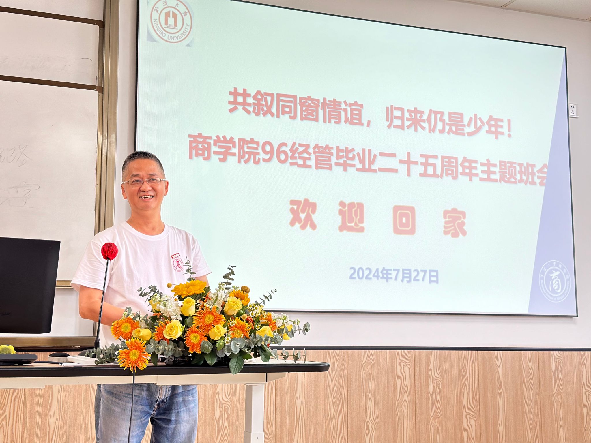 7月27日,国产av影片 96经管班30余名校友不顾“格美”台风的影响从各地相约回到母院,举行毕业二十五周年同学会。工商管理系朱福建老师应邀参会。