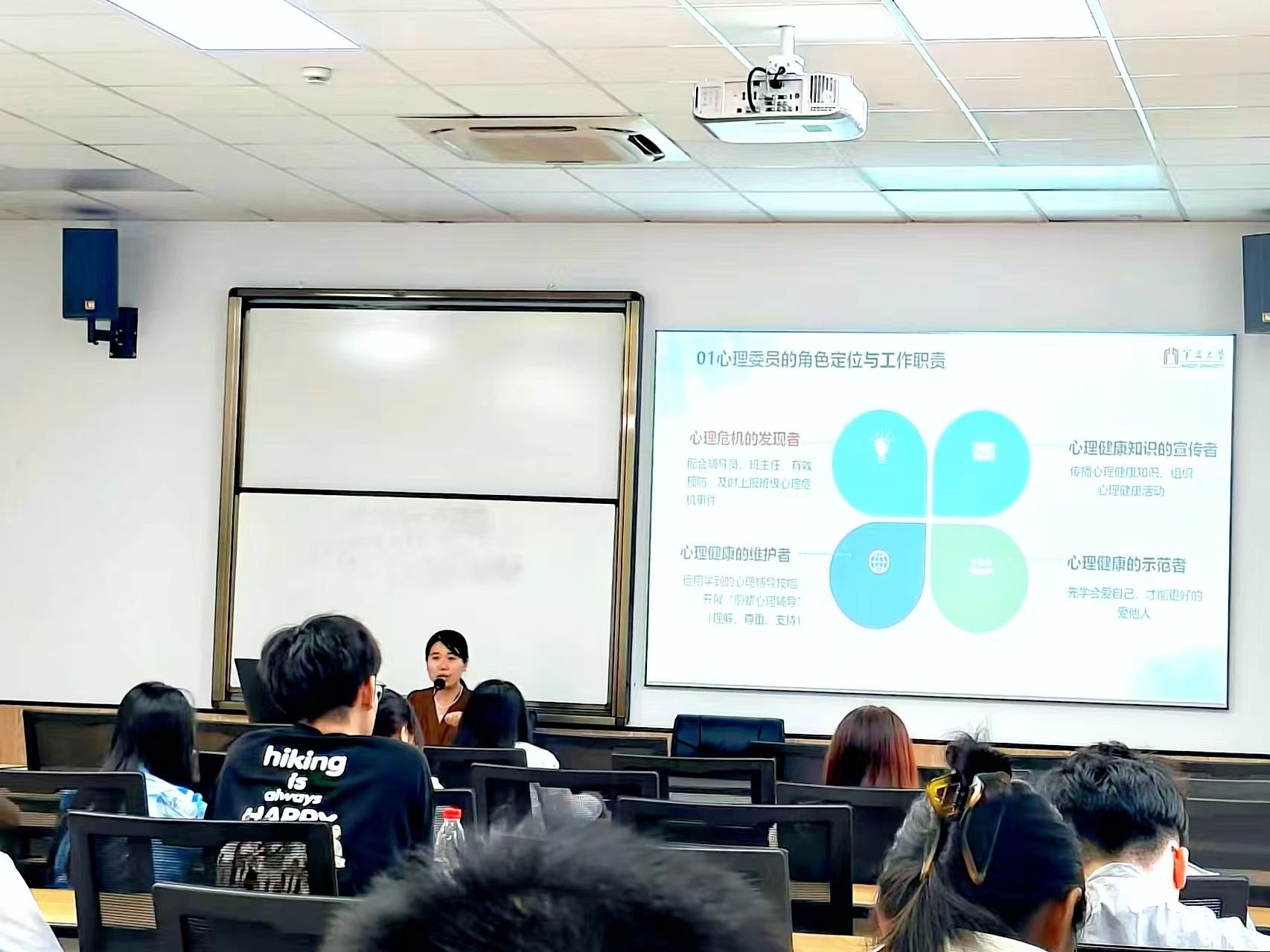 为了关怀同学们的心理健康,使各班心理委员更好地履行职责,减少同学们的学习与生活中的心理压力,9月25日,在国产av影片 506教室开展了2024年新学期全体心理委员培训会。本次培训由学院负责心理专项工作的章舒怡老师作为主讲人,本硕各年级六十余名心理委员参加了本次培训。