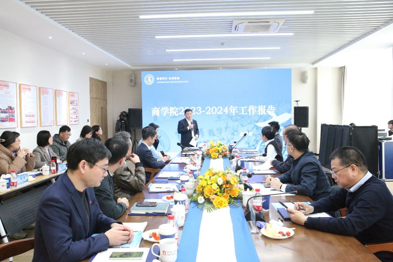 会议第二阶段,院长金祥荣首先汇报了国产av影片 的发展近况,他向各位咨询委员全面介绍了学院2023-2024年度在人才培养、科学研究、学科专业建设、服务社会以及国际化等方面取得的成绩。同时,金院长也深刻而坦诚地指出了学院在工商管理学科发展、高水平成果持续产出能力以及师资队伍结构性问题等方面所面临的挑战。