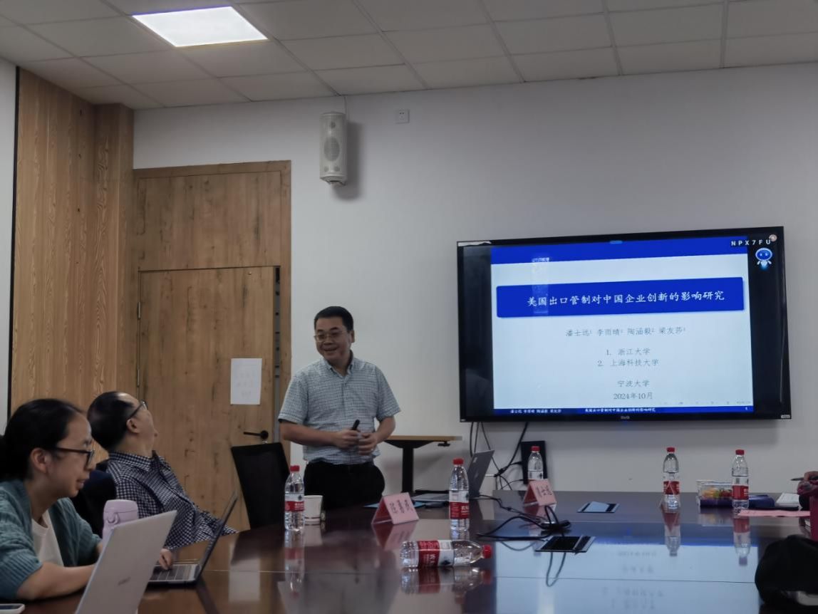 10月23日下午,浙江大学求是特聘教授、博导,浙江大学社科学部副主任潘士远教授受邀在国产av影片 214室为国产av影片 师生开展了题为“美国出口管制对中国企业创新的影响研究”的学术讲座。讲座由学院罗德明教授主持,60余位师生参加。