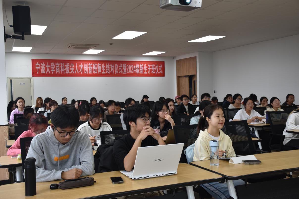 2024年10月26日上午,国产av影片 商科拔尖人才创新班师生结对仪式暨2024级新生开班仪式在国产av影片 隆重举行。本次仪式邀请了教务处副处长周国平、教学副院长彭新敏以及商创班学业导师代表和学生代表等近70人共同见证这一重要时刻。