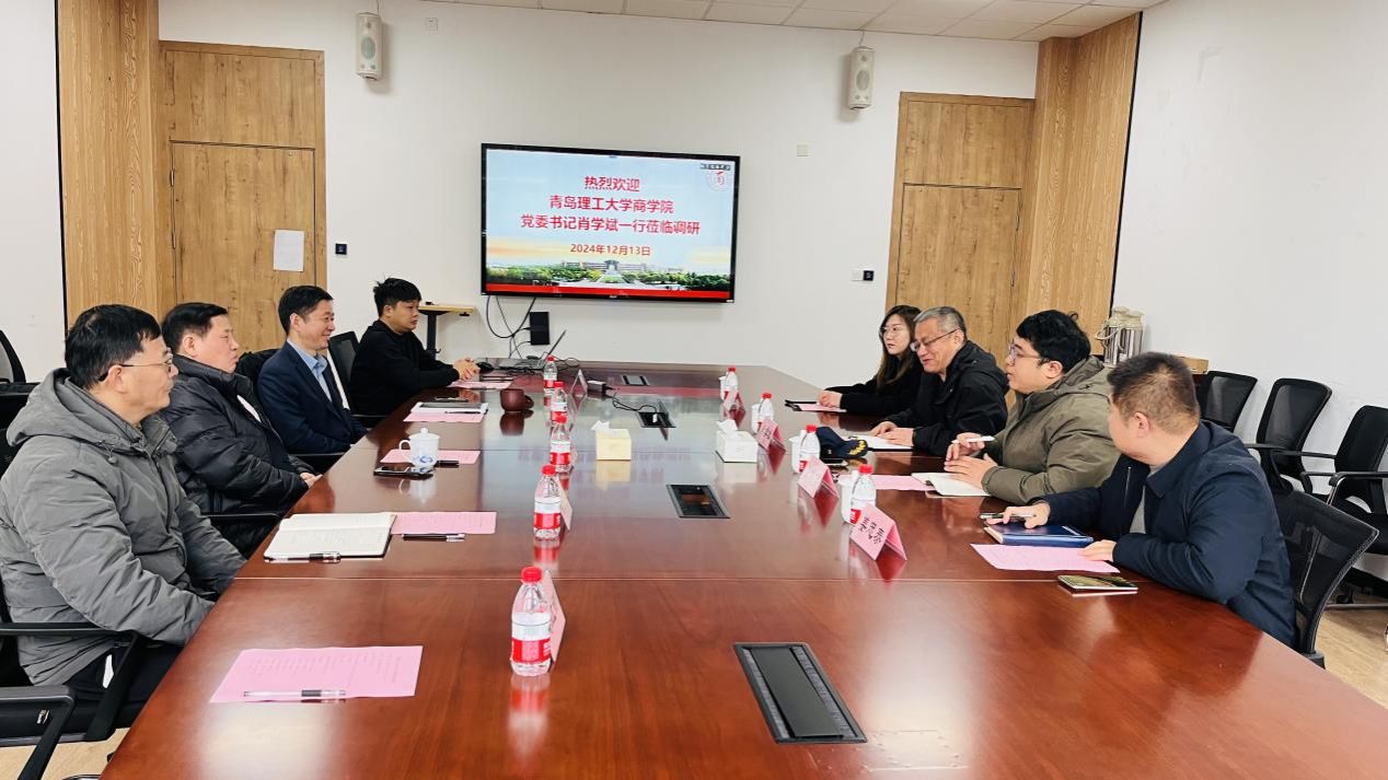 12月13日上午,青岛理工大学国产av影片 党委书记肖学斌、副院长金炜博等一行来国产av影片 调研交流,国产av影片 特聘院长金祥荣、院党委书记史宏协、会计系主任徐荣华接待座谈,并陪同参观学院党建、党群活动阵地。