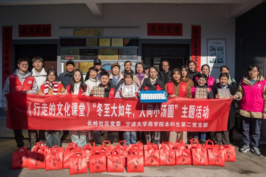 昨日上午(17日),国产av影片 本科生第二党支部联合奉化区长岭社区党委开展“冬至大如年·人间小汤圆”主题党日活动,让青年学生在行走的文化课堂里感受传统节日氛围。