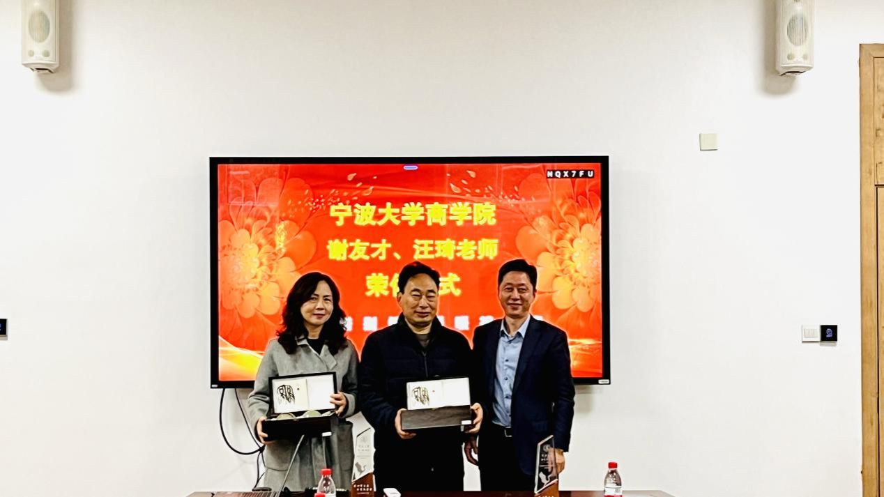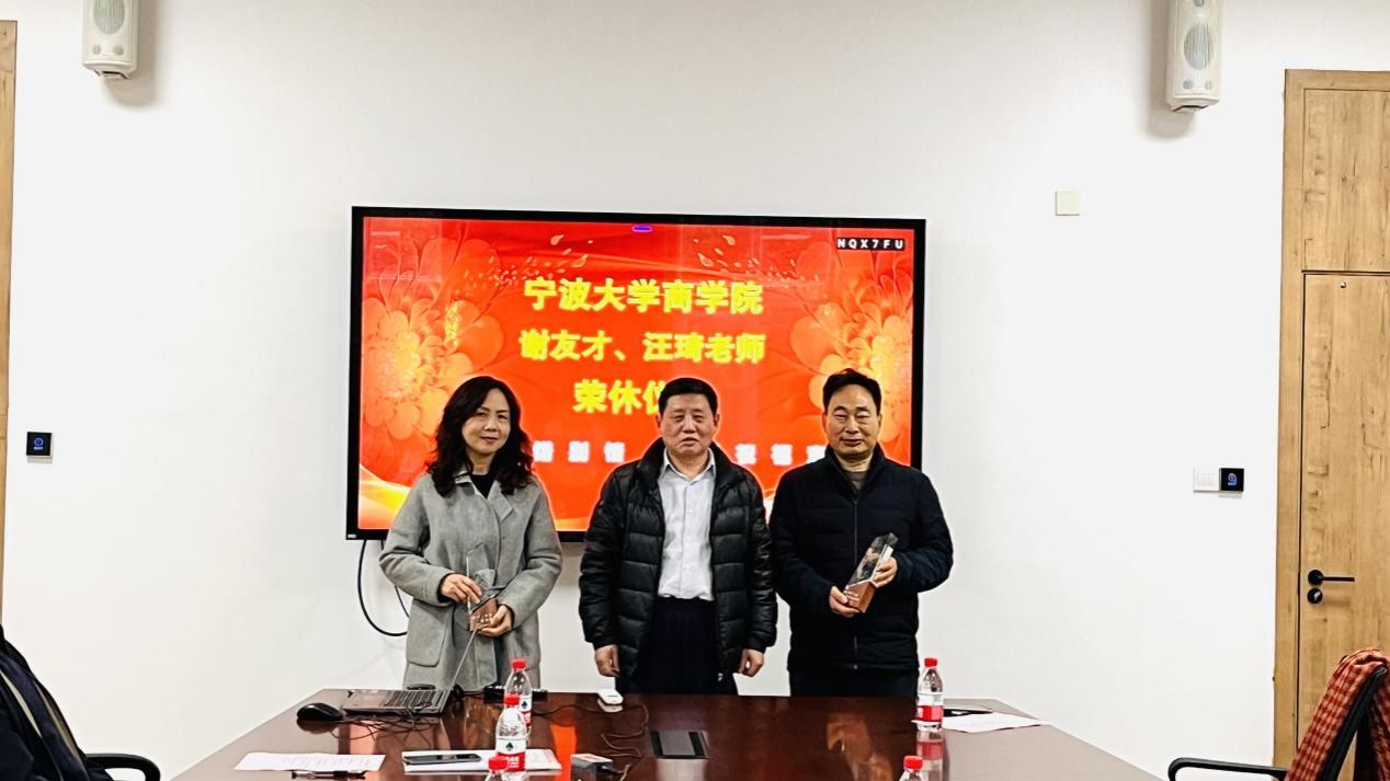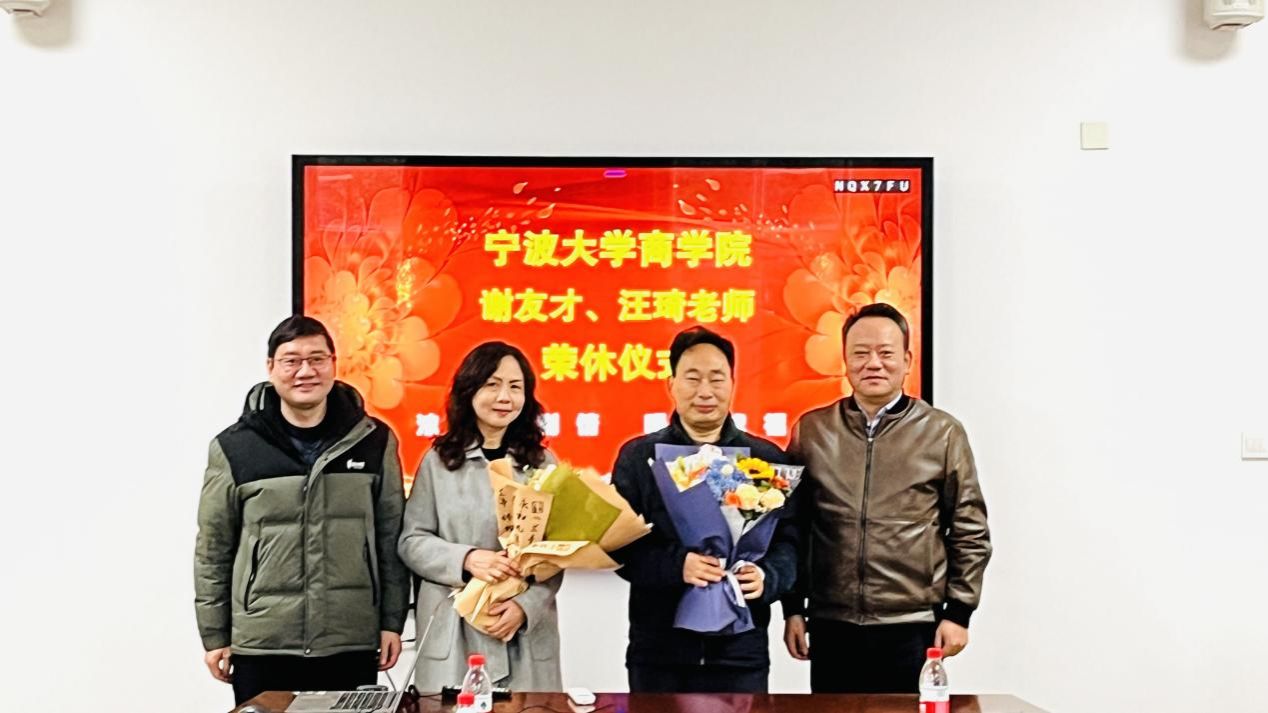 12月11日下午,国产av影片 在曹光彪楼为2024年下半年退休的谢友才、汪琦两位老师举行荣休仪式。仪式由国产av影片 工会副主席朱福建主持,国产av影片 院长金祥荣、党委书记史宏协、副院长陈涛、副院长谢慧明、副院长彭新敏出席仪式,管工系、国贸系系主任及教师代表共同见证了这一温馨的时刻。