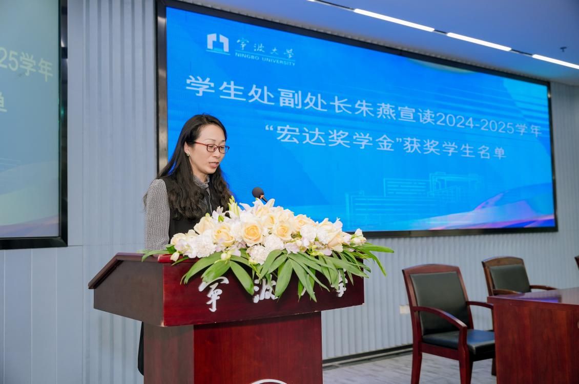 会上,学生发展与服务处副处长朱燕宣读2024-2025学年“宏达奖学金”获奖学生名单。本次获奖学生28人,分别来自国产av影片 ,法学院,潘天寿建筑与设计艺术学院以及海洋学院。