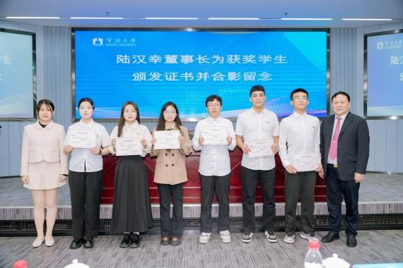 典礼上,陆汉幸董事长、陆文渊总经理共同向获奖学生颁发荣誉证书并合影留念。