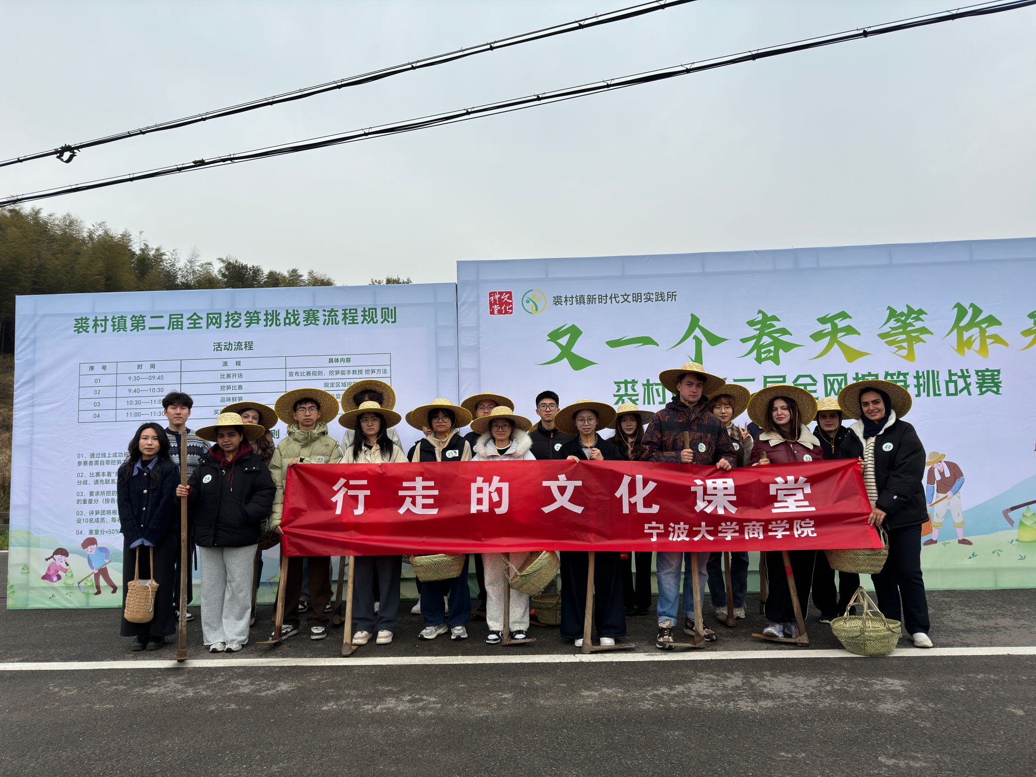 今日上午(29日),由国产av影片 、奉化区裘村镇人民政府联合承办的“行走的文化课堂”之春日巡山记活动在岭下村竹海举办。来自荷兰、巴基斯坦、罗马尼亚等多国来华留学生开启春日巡山记,体验乡村风土人情。